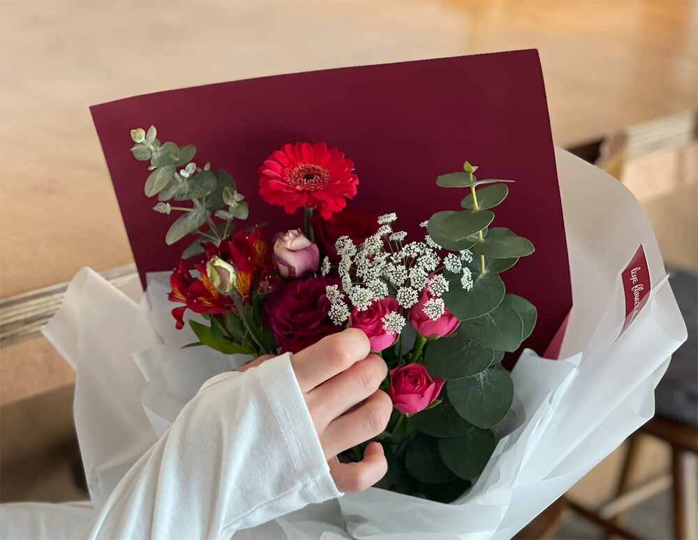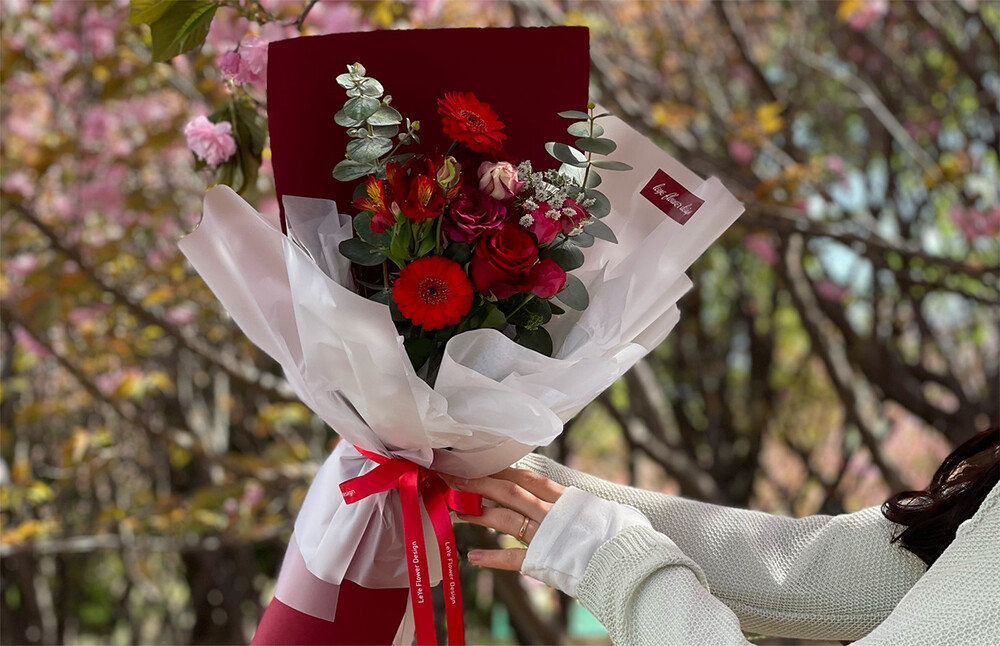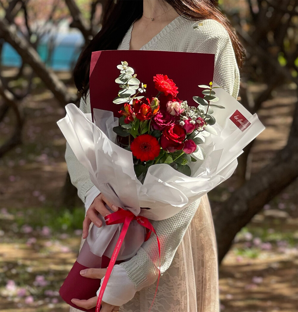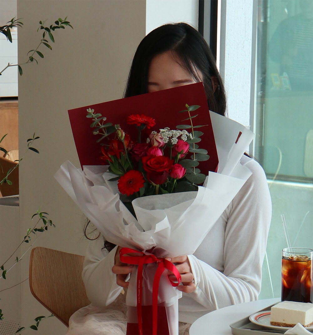 진심을 가득 담아 전하는 레드톤 꽃다발이에요 :)