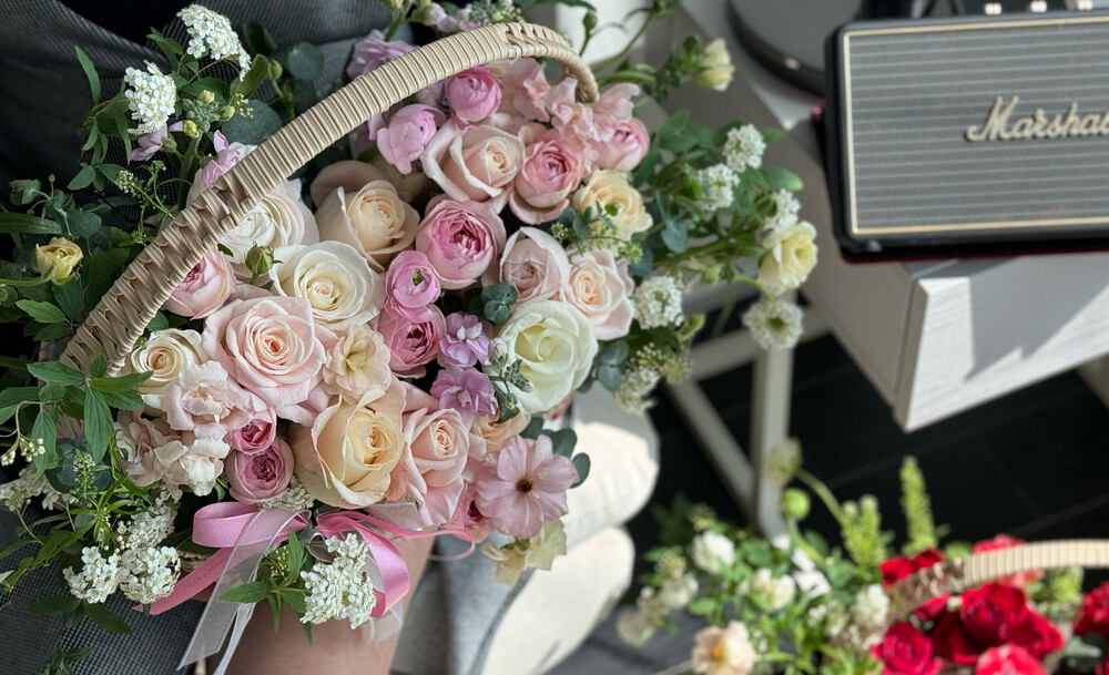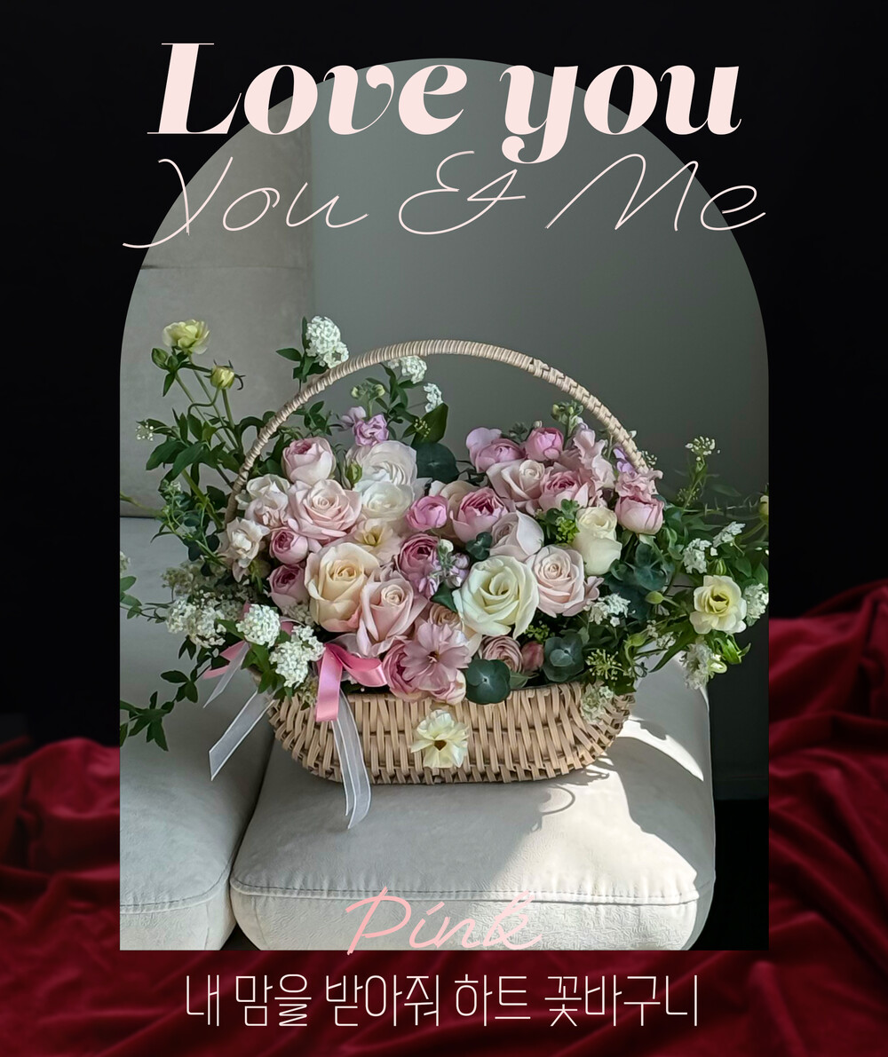 내 맘을 받아줘 하트 꽃바구니 핑크🩷