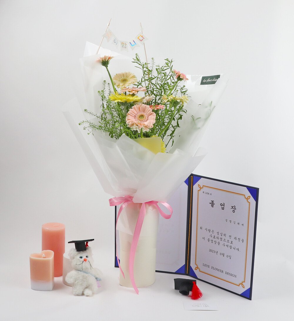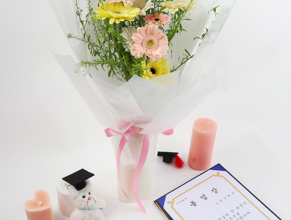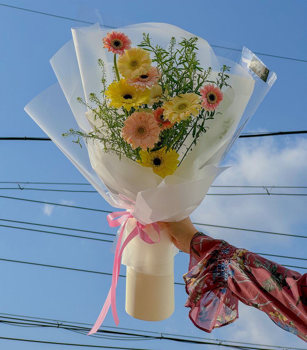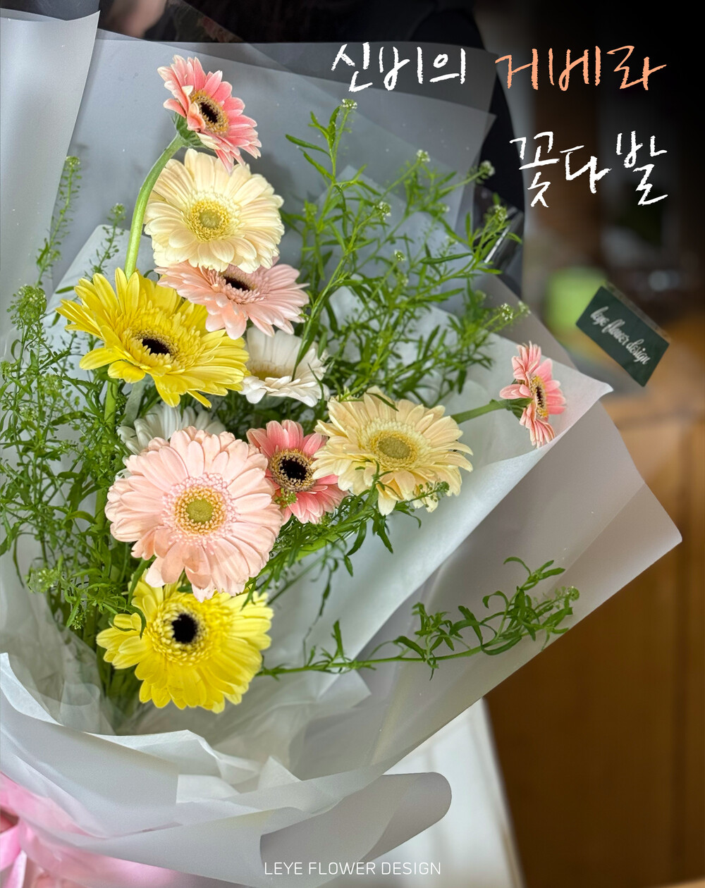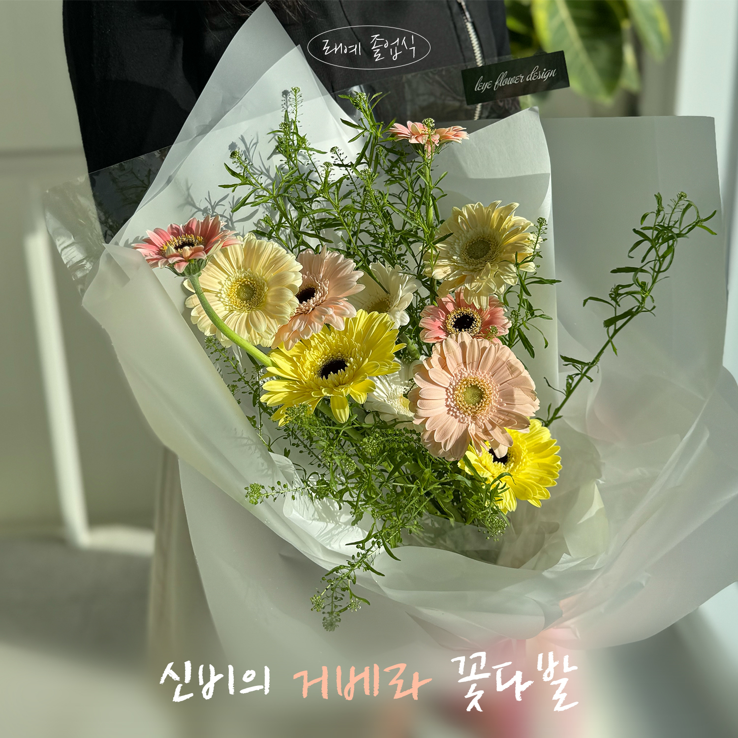 다양한 크기와 색감의 거베라를 선물하고 싶다면 이 꽃다발을 추천드립니다-