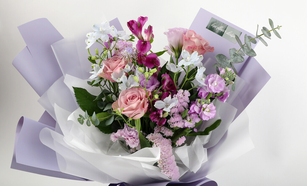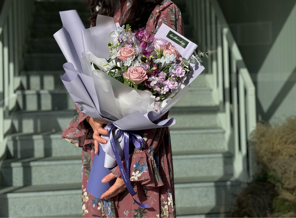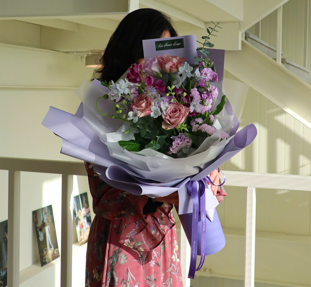 겨울과 잘 어울리는 퍼플톤으로 제작된 꽃다발입니다.