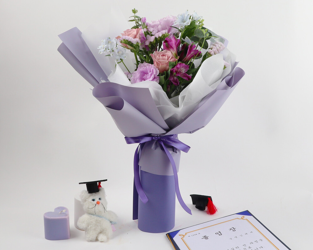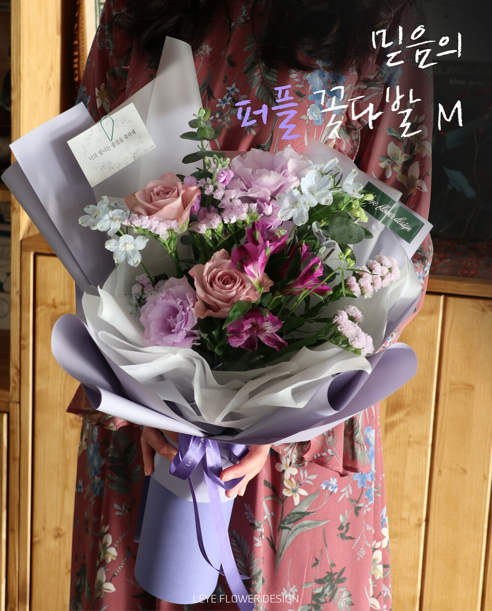겨울과 잘 어울리는 퍼플톤으로 제작된 꽃다발입니다.