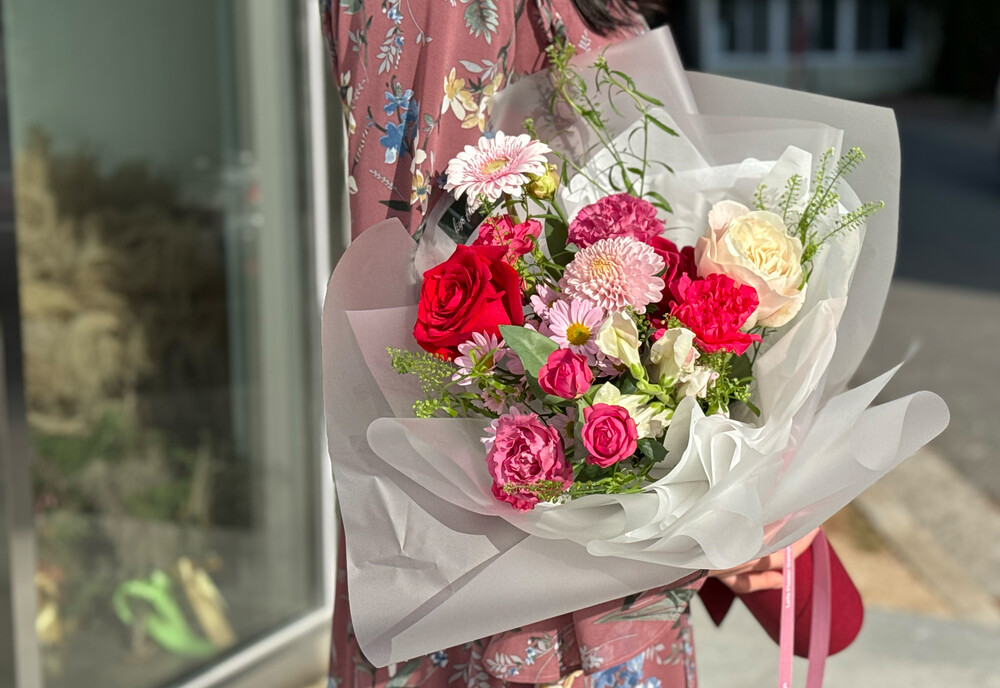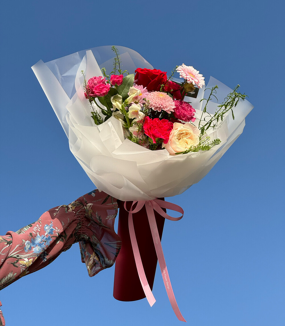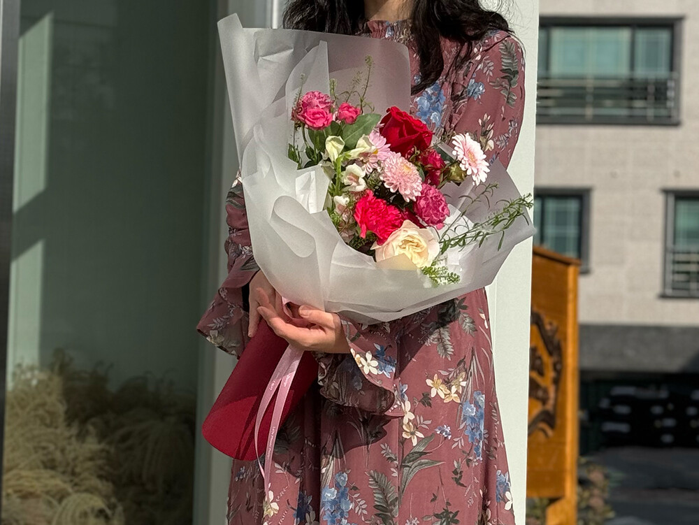 강렬한 색상의 레드와 부드러운 핑크가 어우러져 더욱 돋보이는 꽃다발이예요