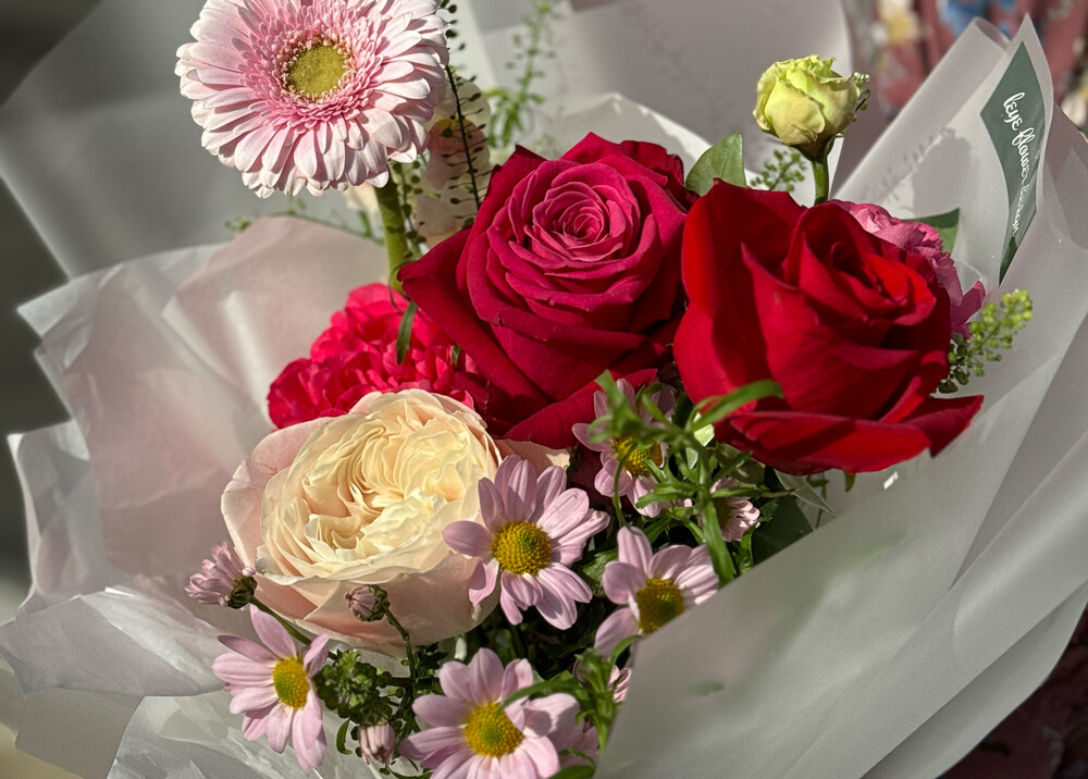 강렬한 색상의 레드와 부드러운 핑크가 어우러져 더욱 돋보이는 꽃다발이예요