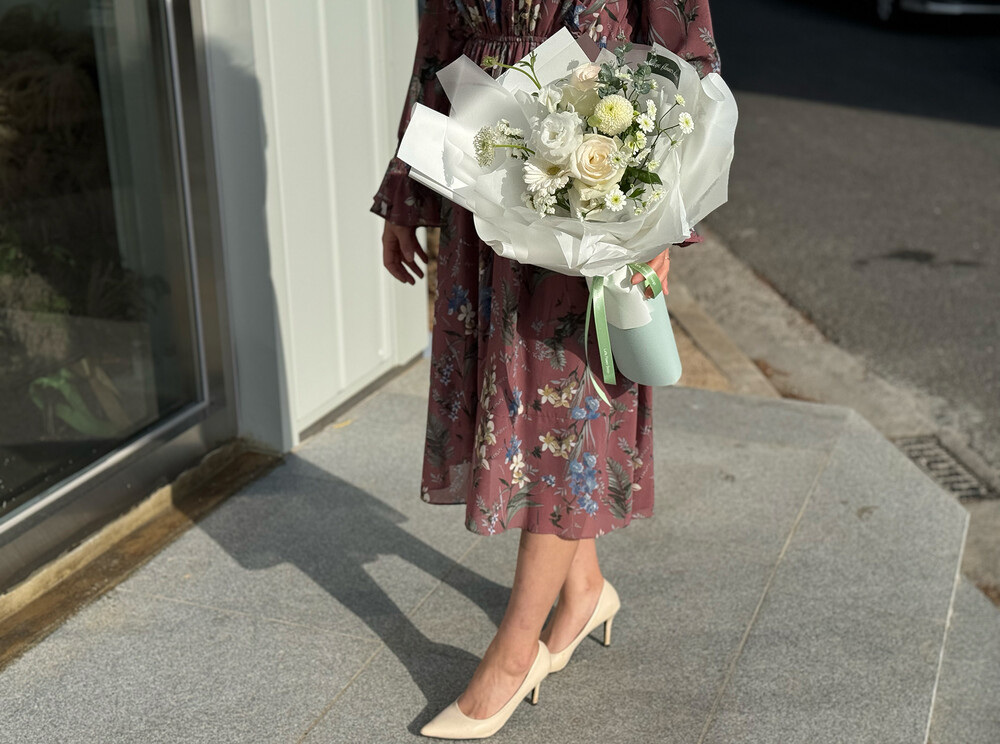 꽃잘알이시라면 ! 화이트 꽃다발을 선물해보세요:)