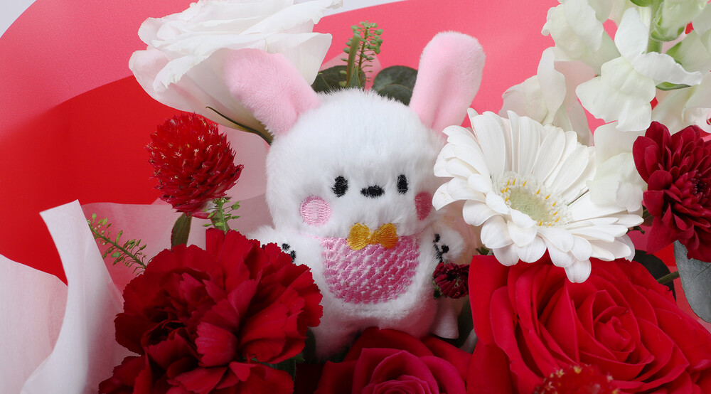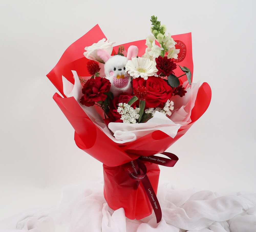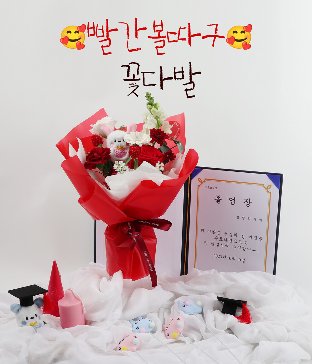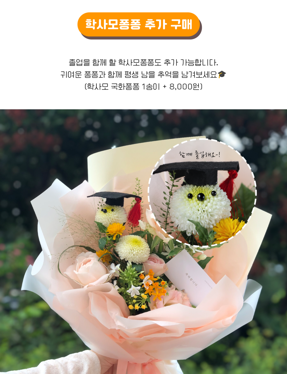 꽃 사이에 아담한 인형도 같이 넣어드려 졸업식,연주회 등 선물로 제격이랍니다-
