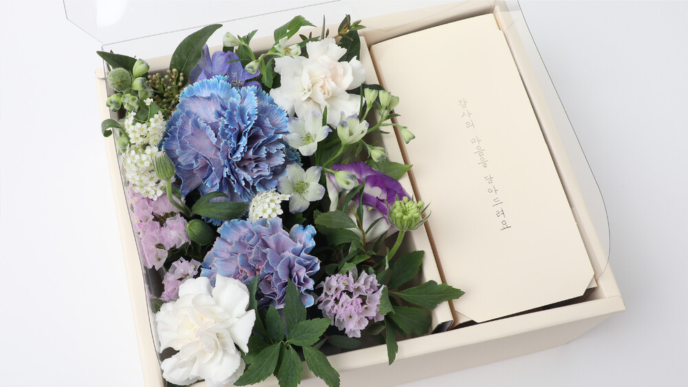 빈티지한 색감이 아름다운 블루보라 꽃을 모아 제작해드립니다.