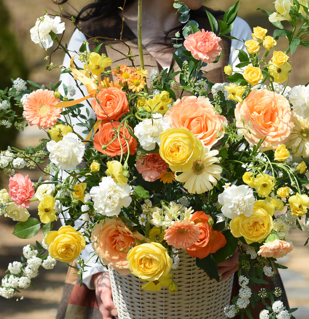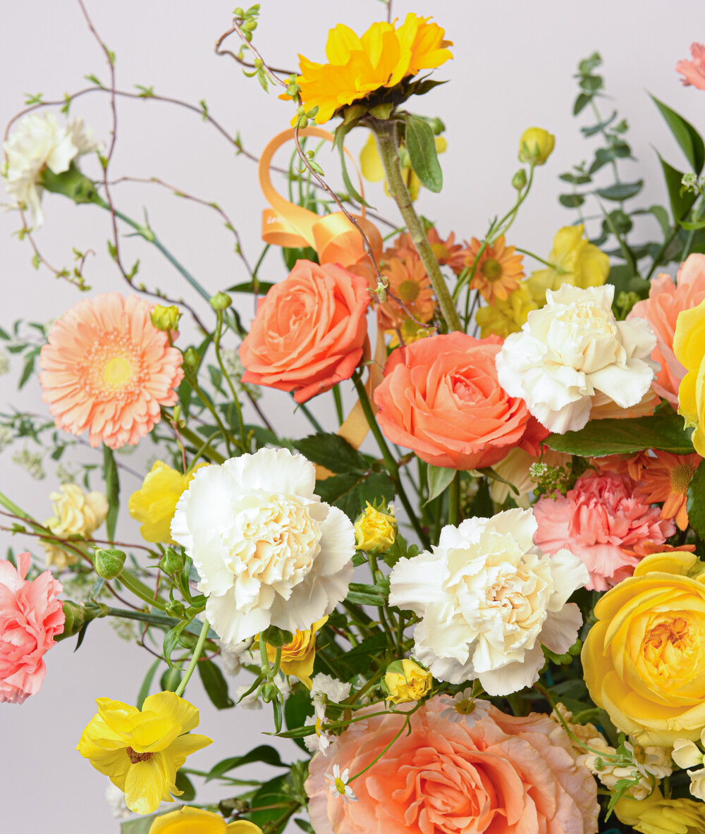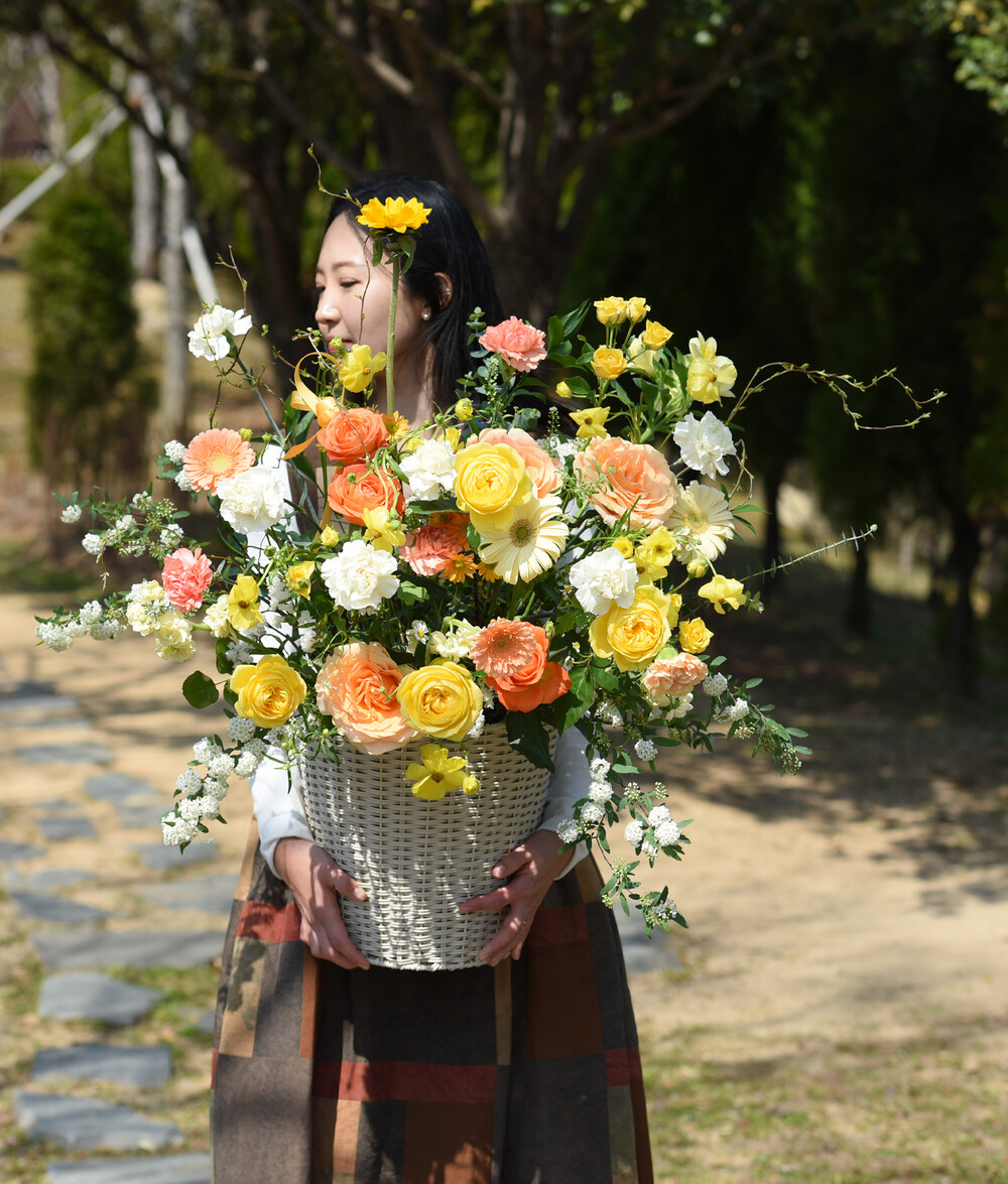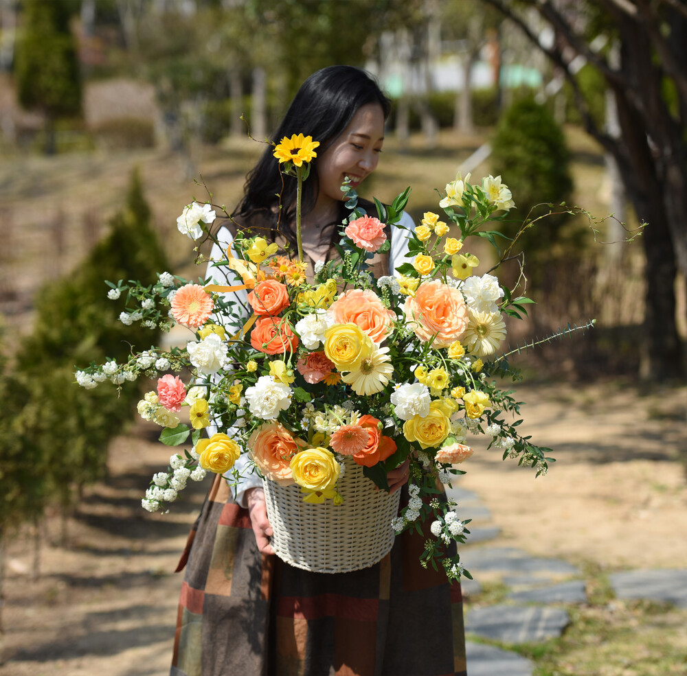 상큼한 봄을 닮은 오렌지옐로 꽃들을 가득 담아 제작해드려요.