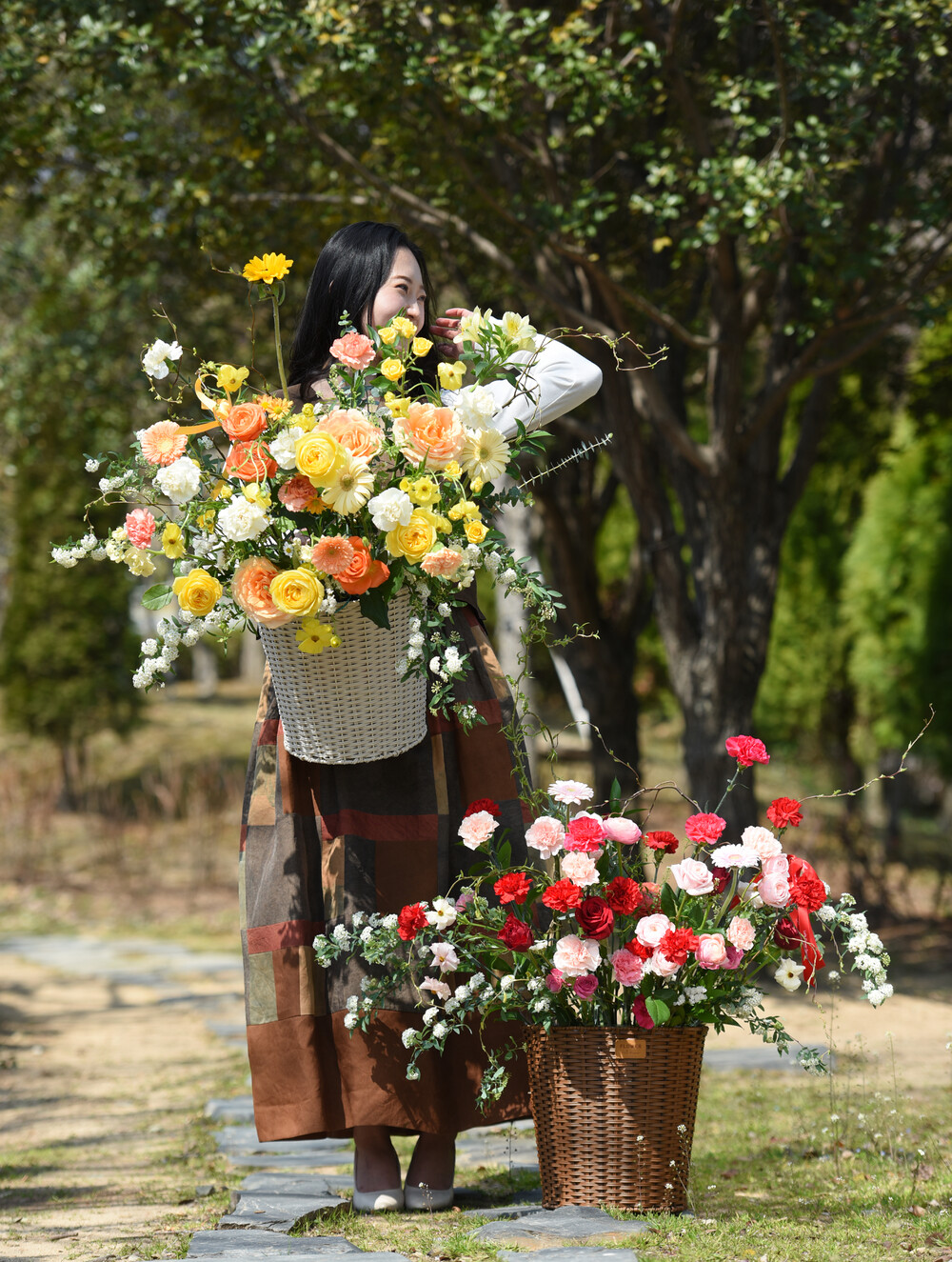 특대형 꽃바구니 사이즈로 성인 남성이 들어도 상체가 가려질 만큼의 크기랍니다.