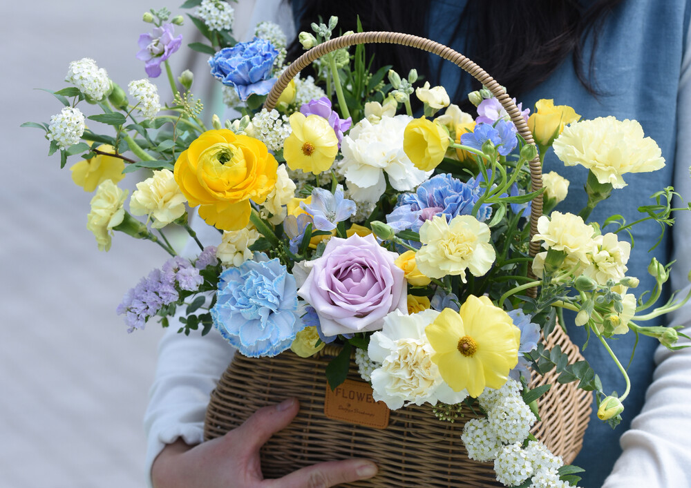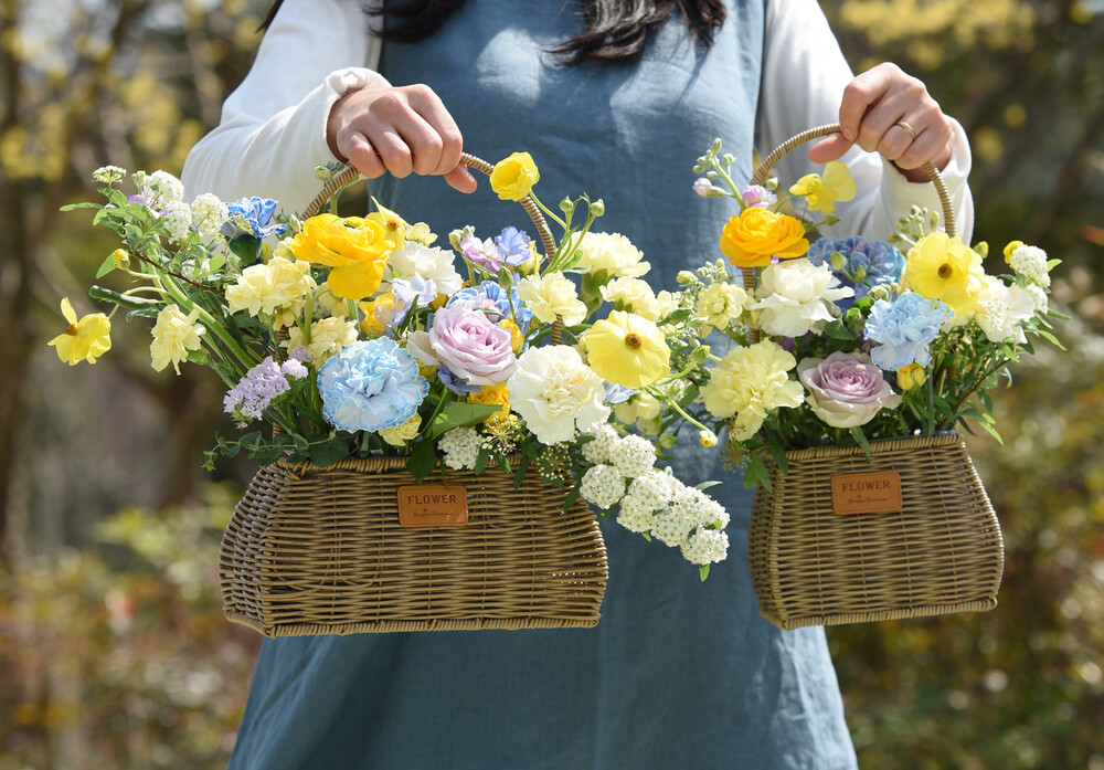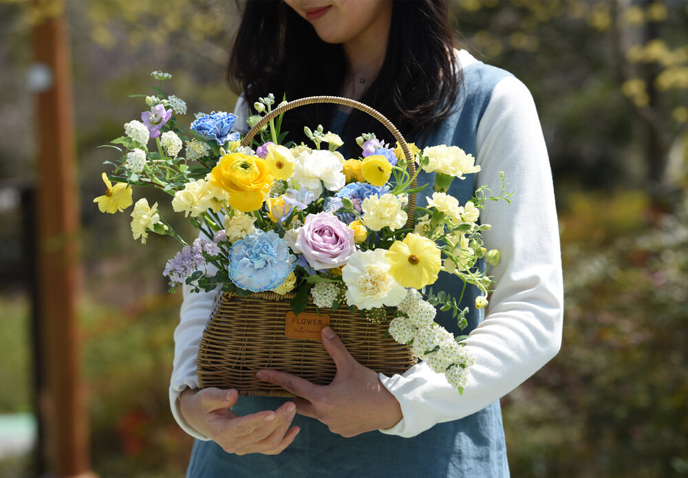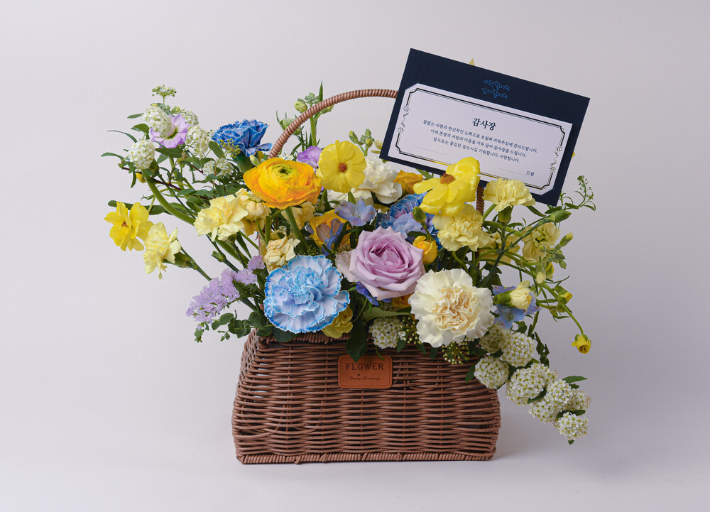 나의 세상 옐로블루 꽃바구니 M
