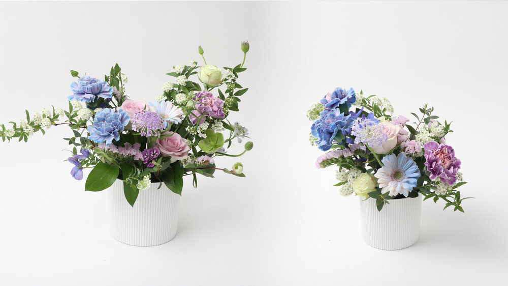 꽃 베이스는 가볍게 테이블에 놓아두고 보실 수 있어요