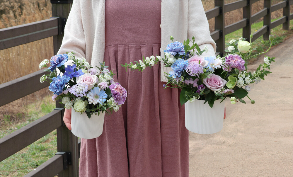꽃베이스 상품은 가져가시기 편하도록 종이가방에 넣어드려요