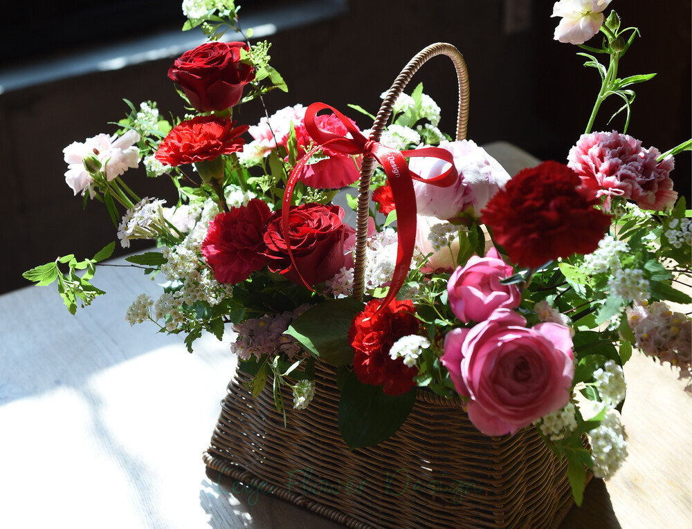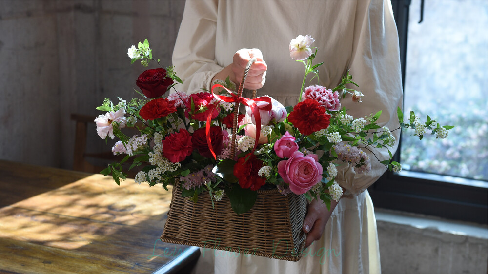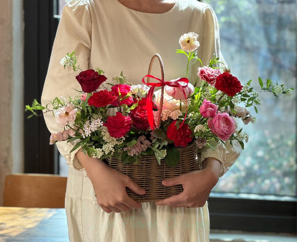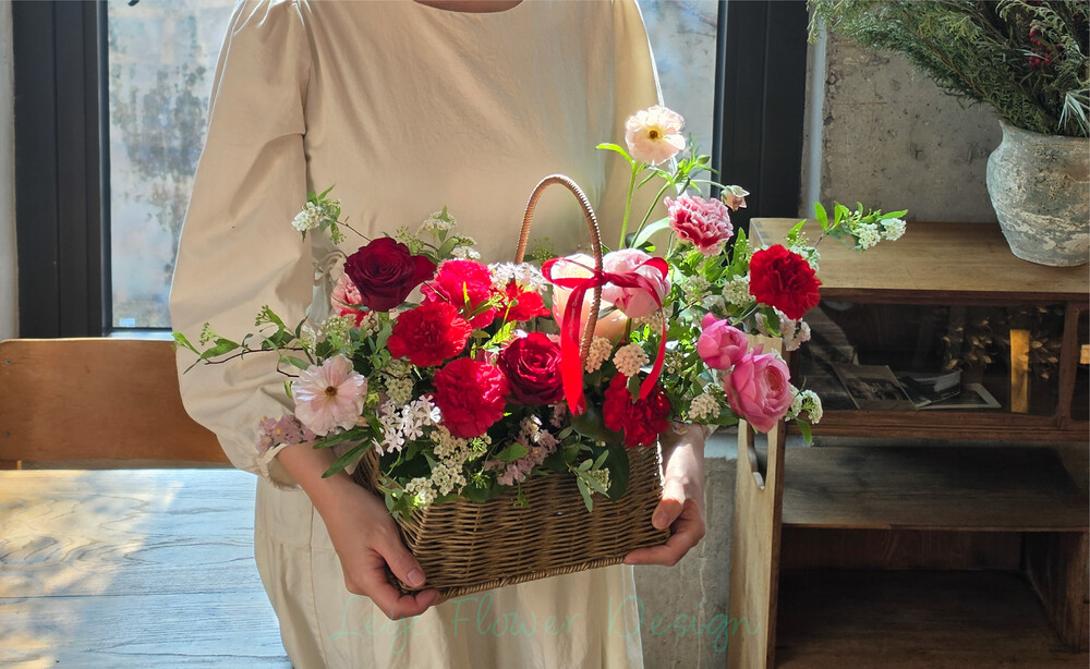 [No.1]행복이 번지는 날 레드핑크 꽃바구니 L