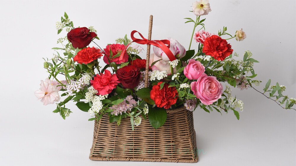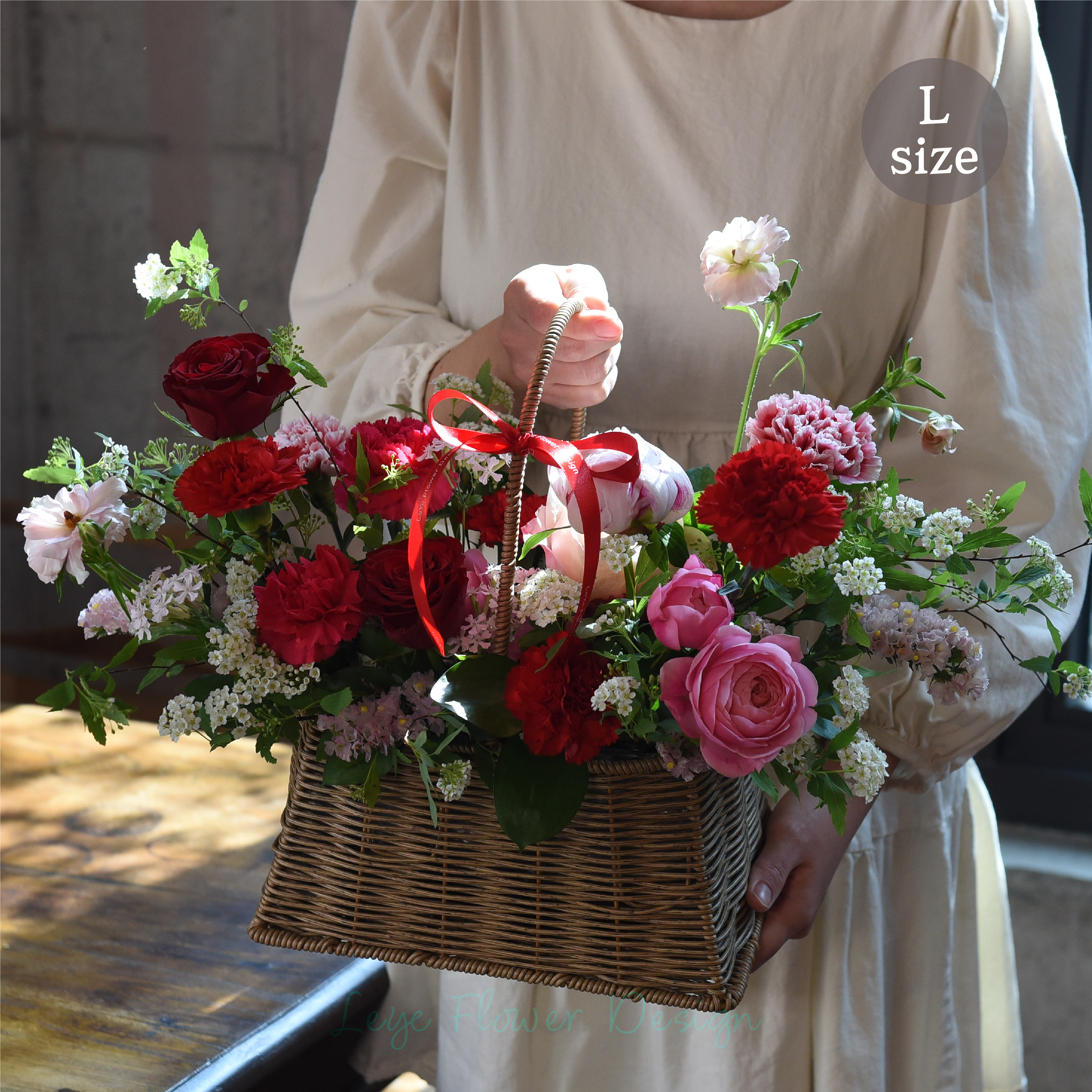 No.1 행복이 번지는 날 레드핑크 꽃바구니 L
