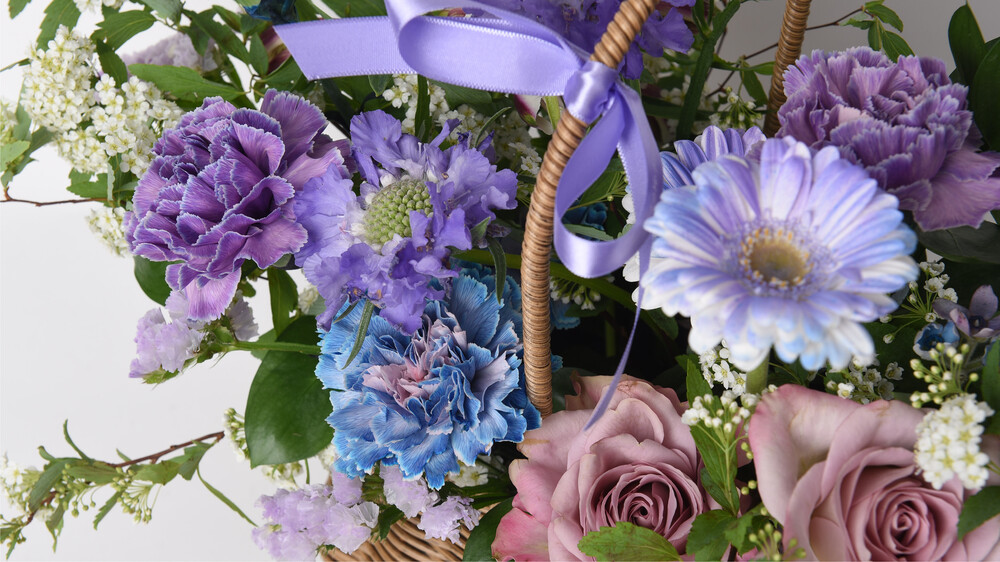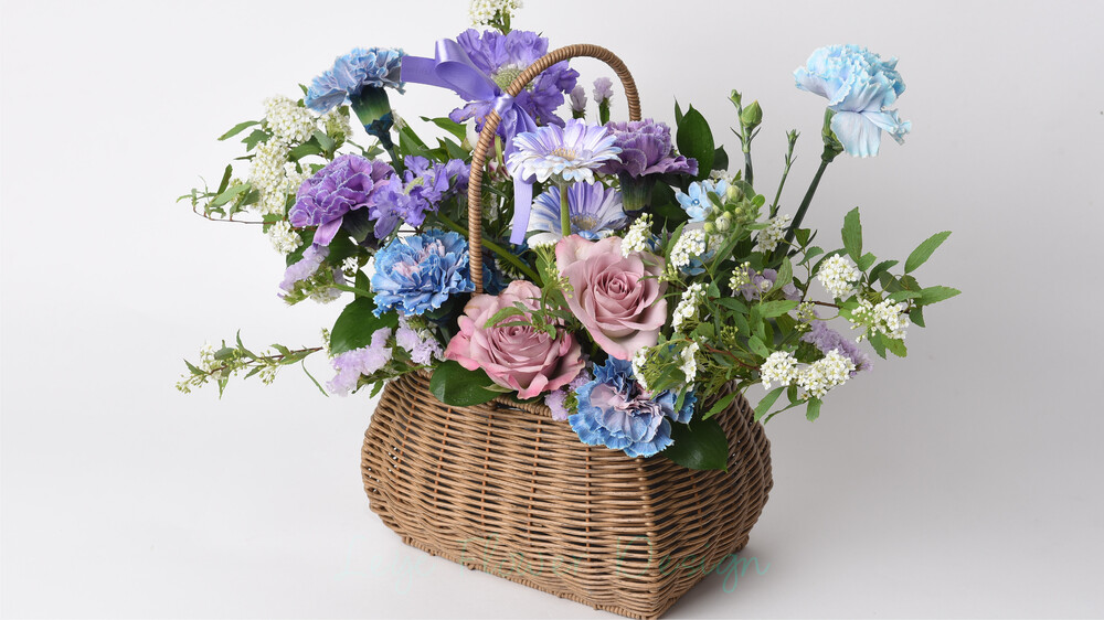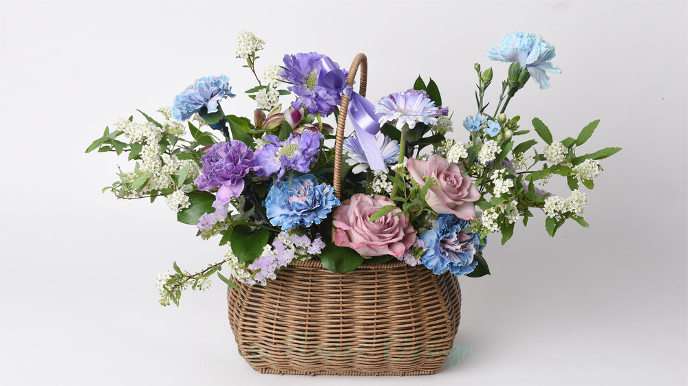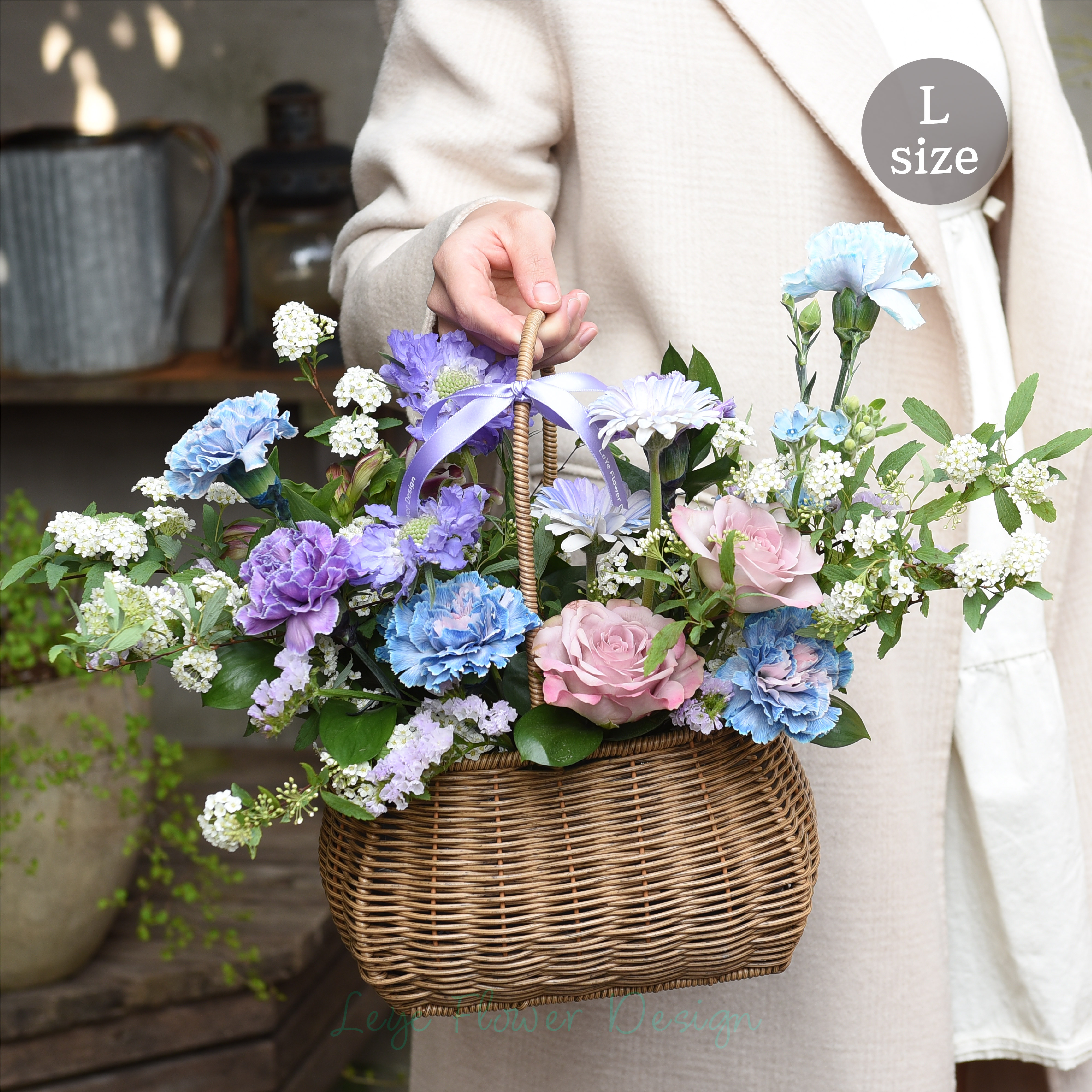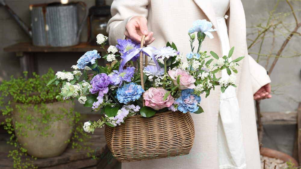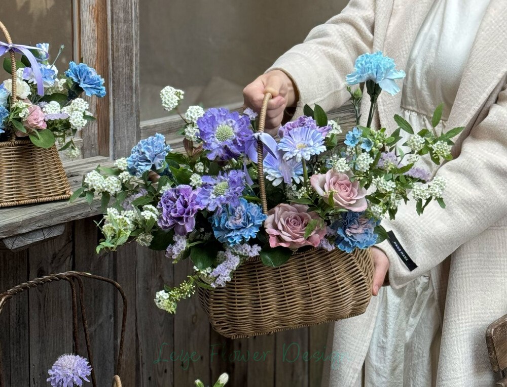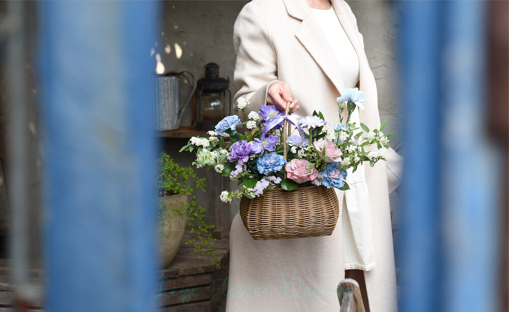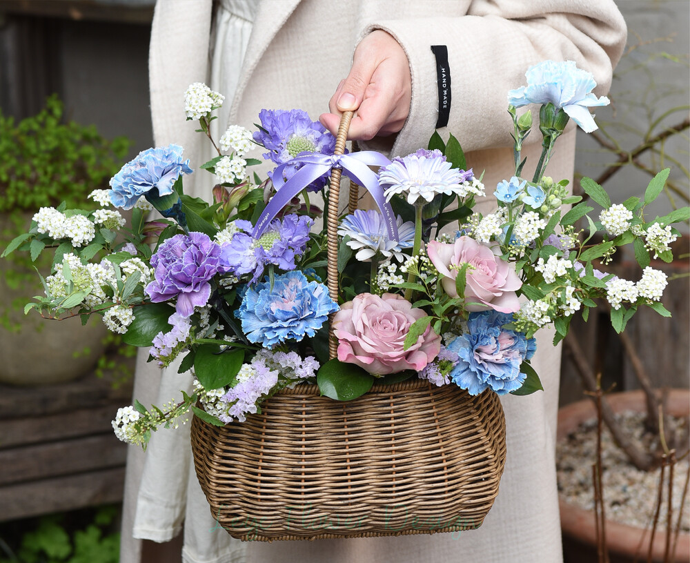 No.1 행복이 번지는 날 블루보라 꽃바구니 L