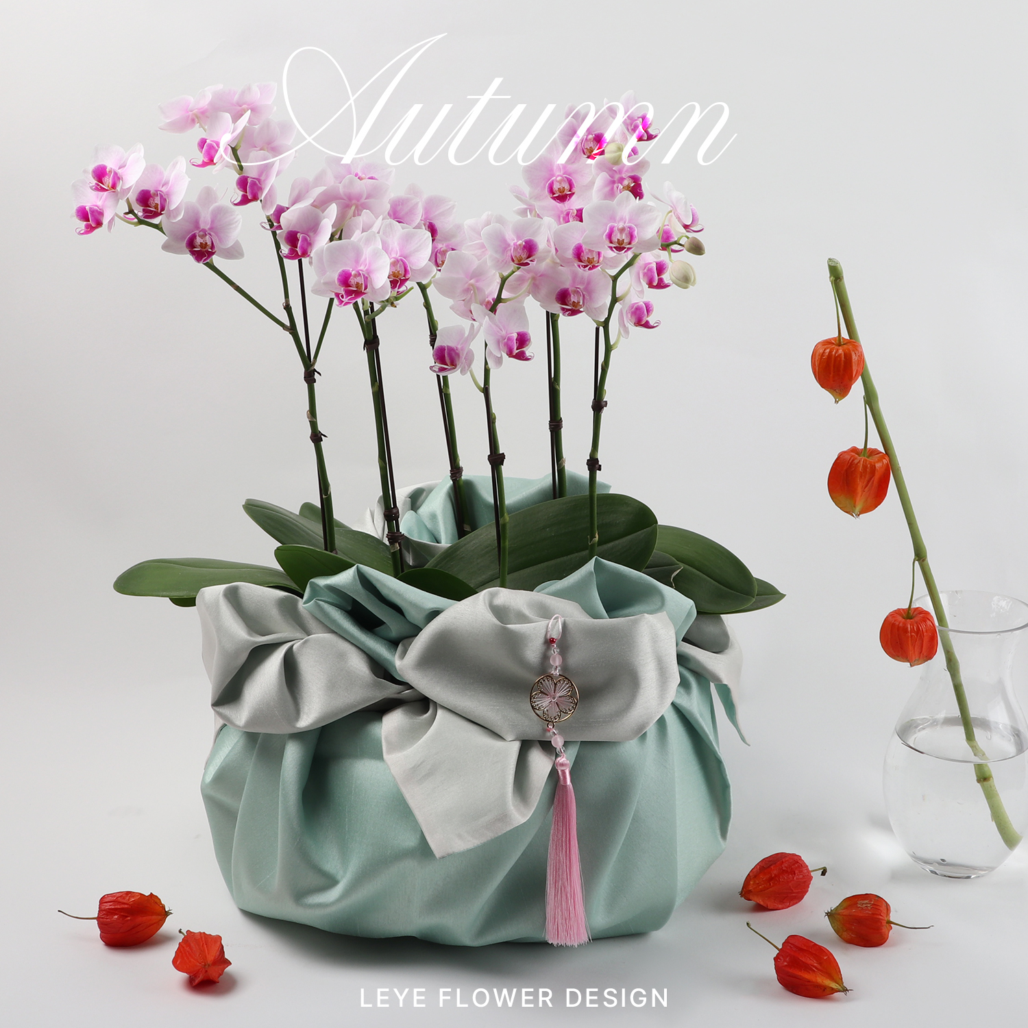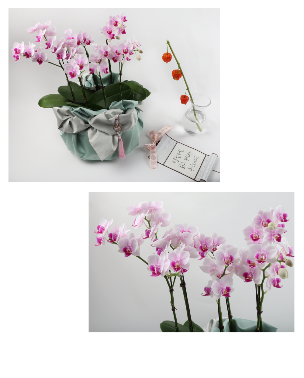 예단처럼 정성을 다한 보자기 포장에 고급스러운 노리개를 포함한 호접난입니다.