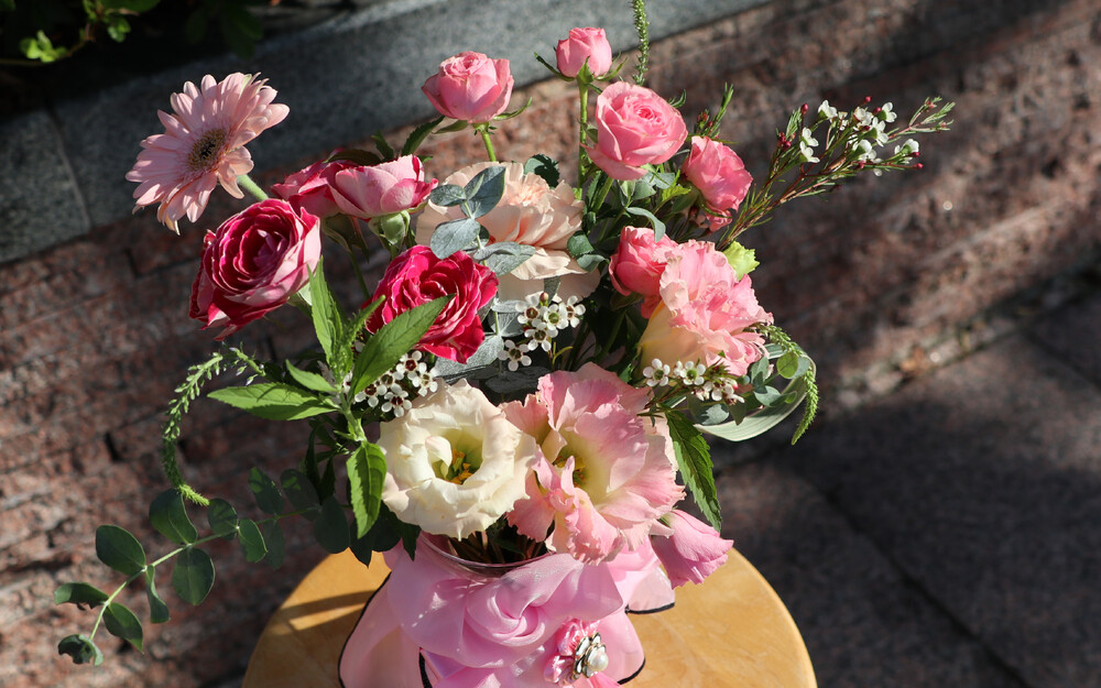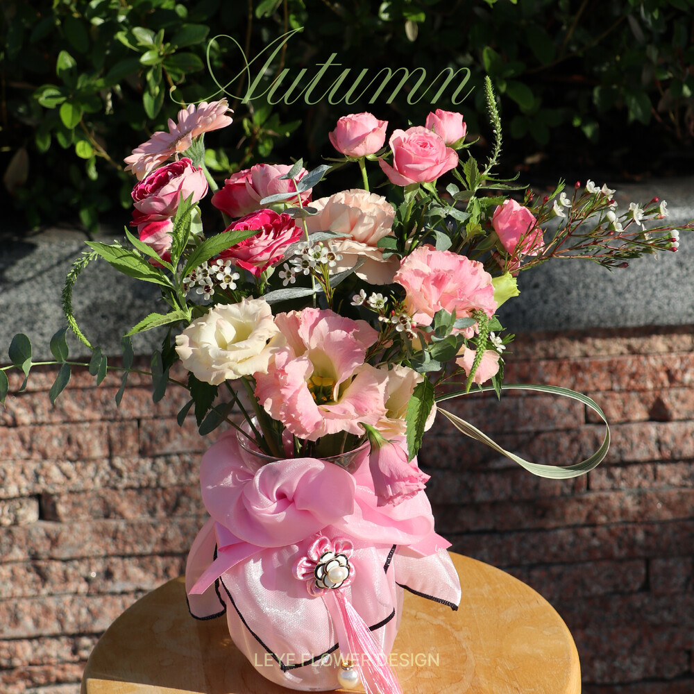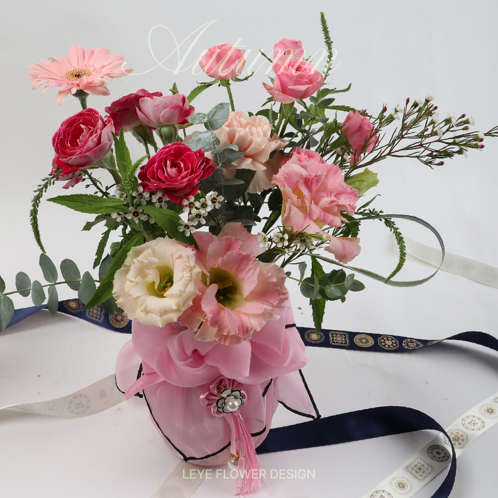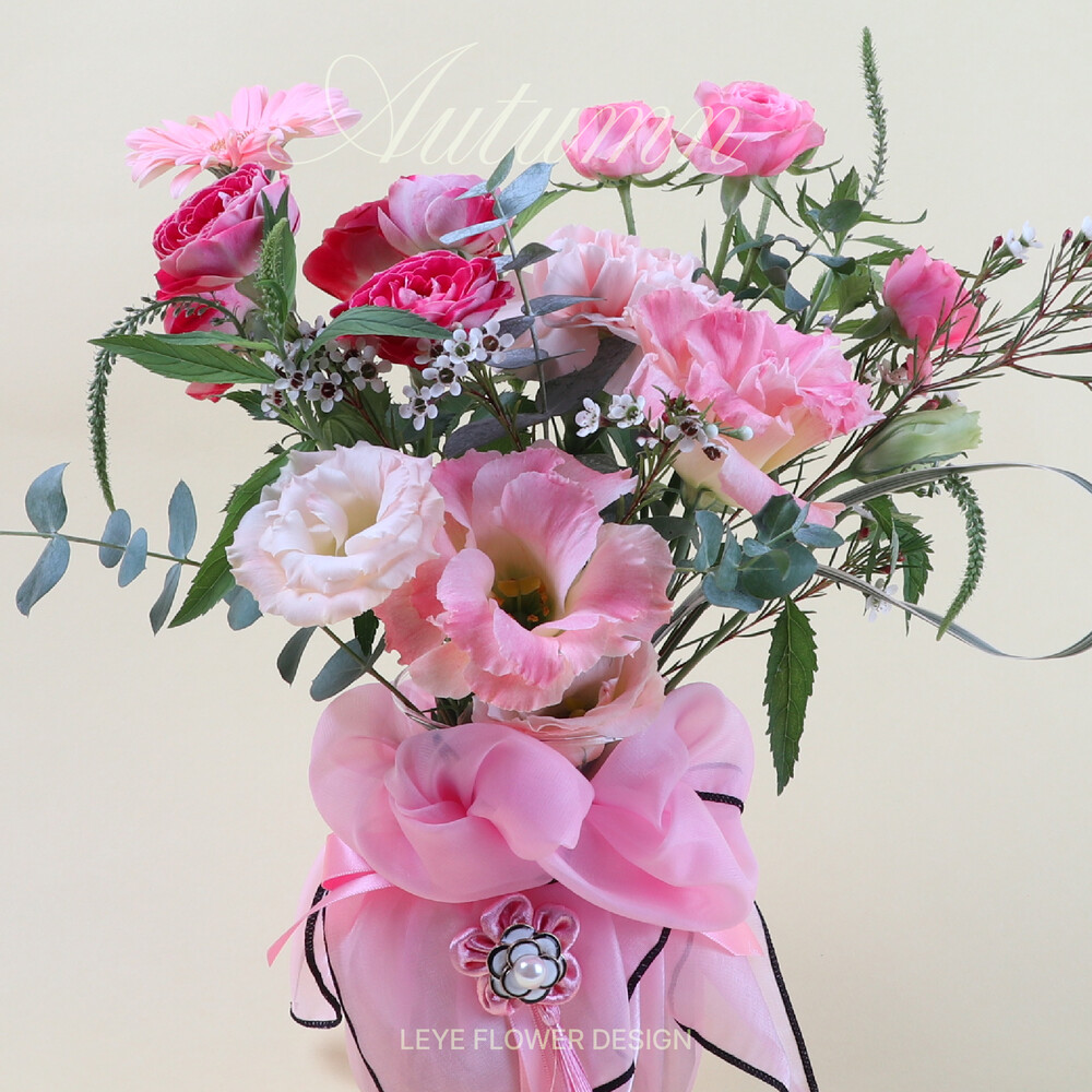 마음을 담아 사랑스러운 핑크톤으로 구성된 화병꽂이입니다