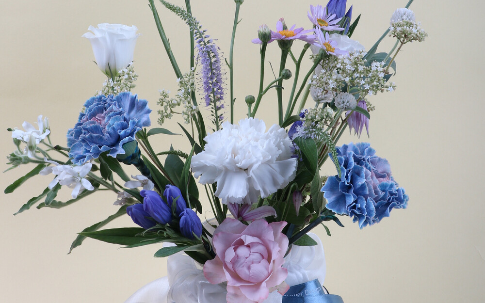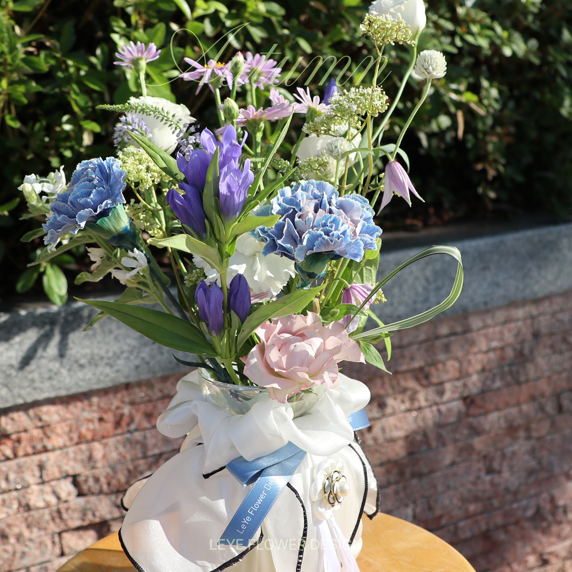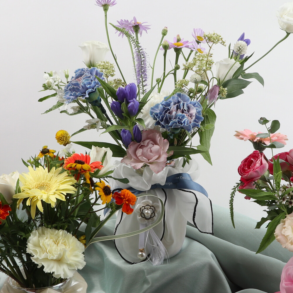 가을하늘을 닮은 청명하고 부드러운 컬러들로 구성한 화병꽂이입니다