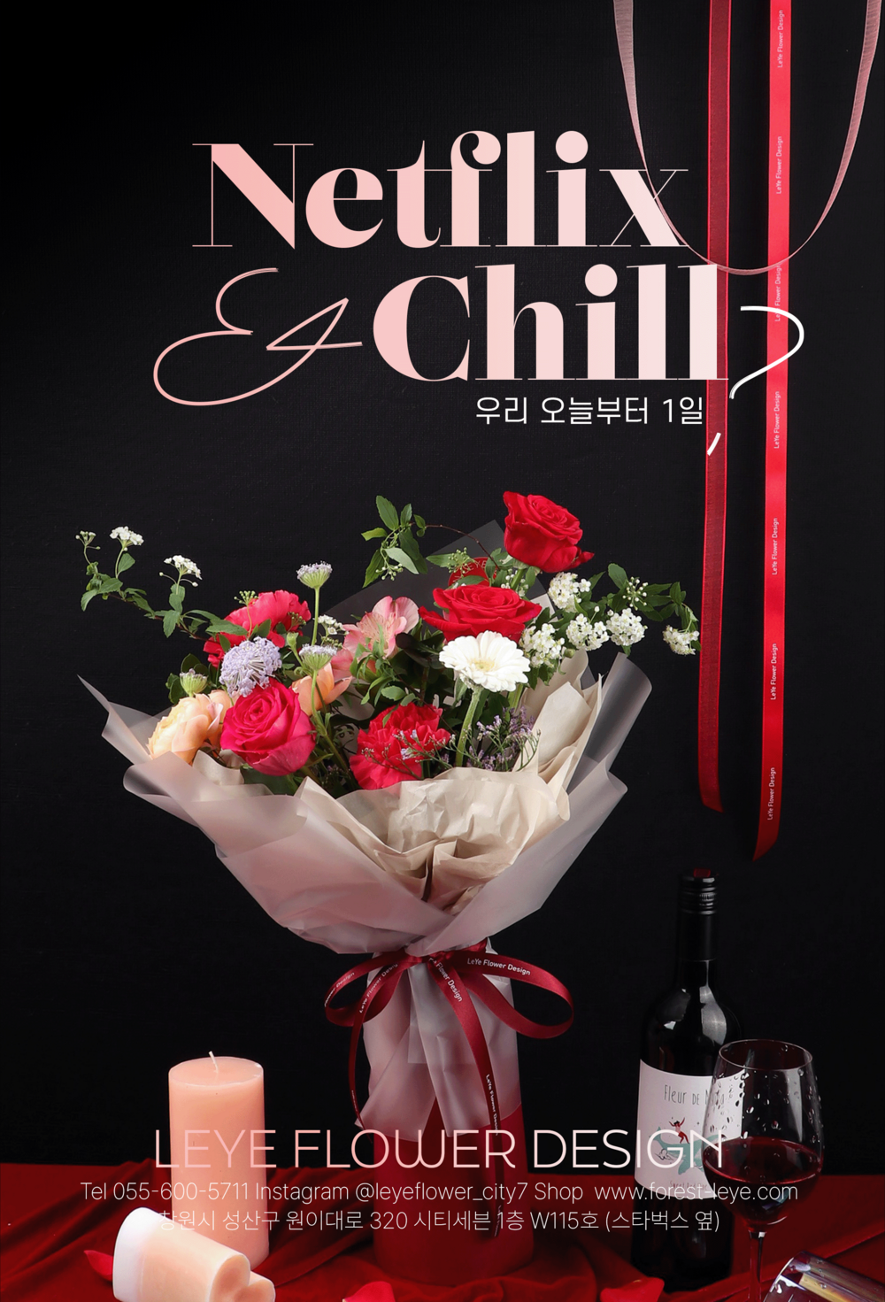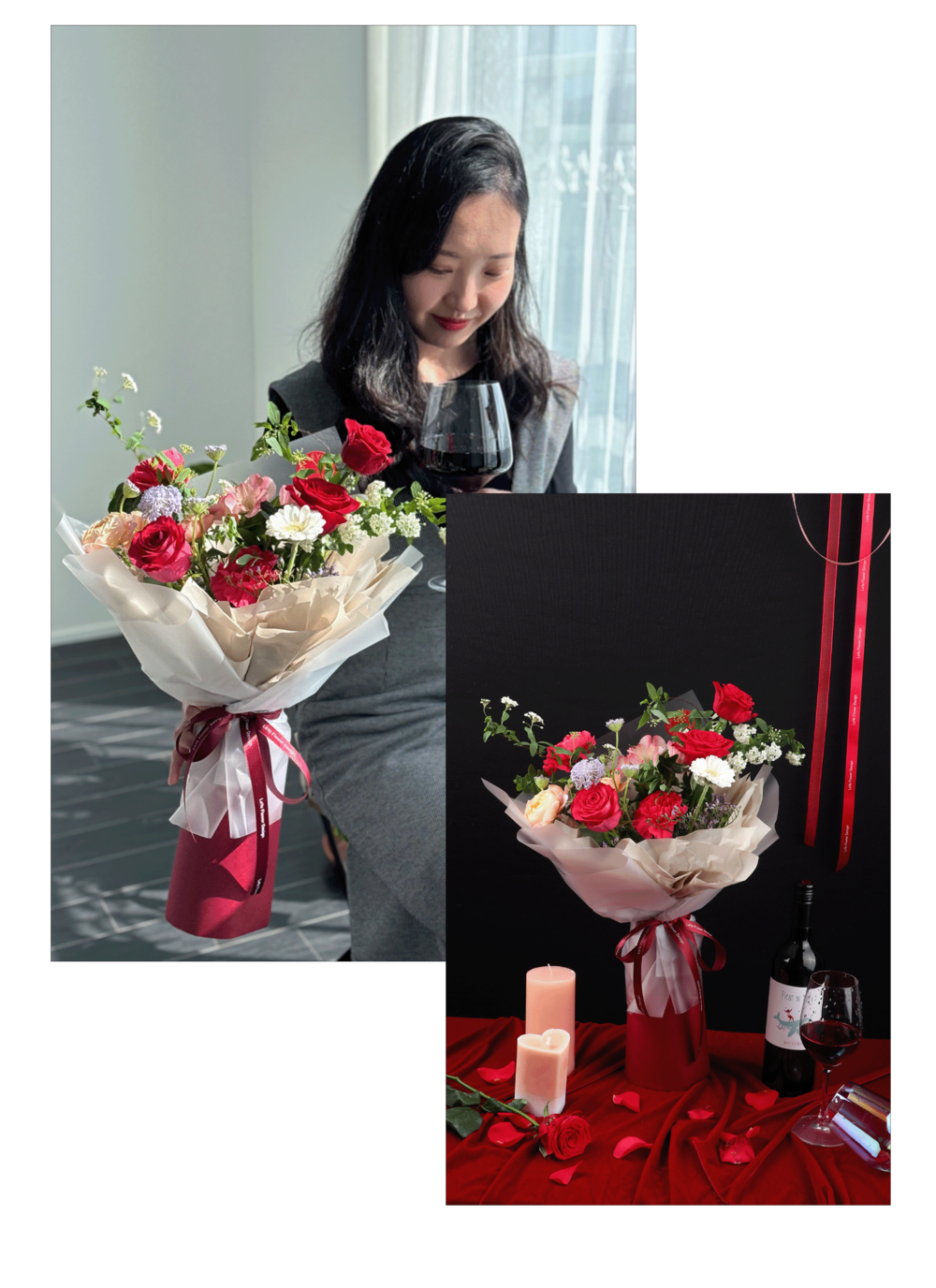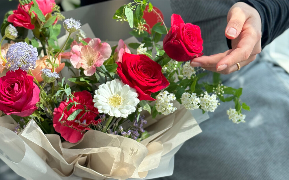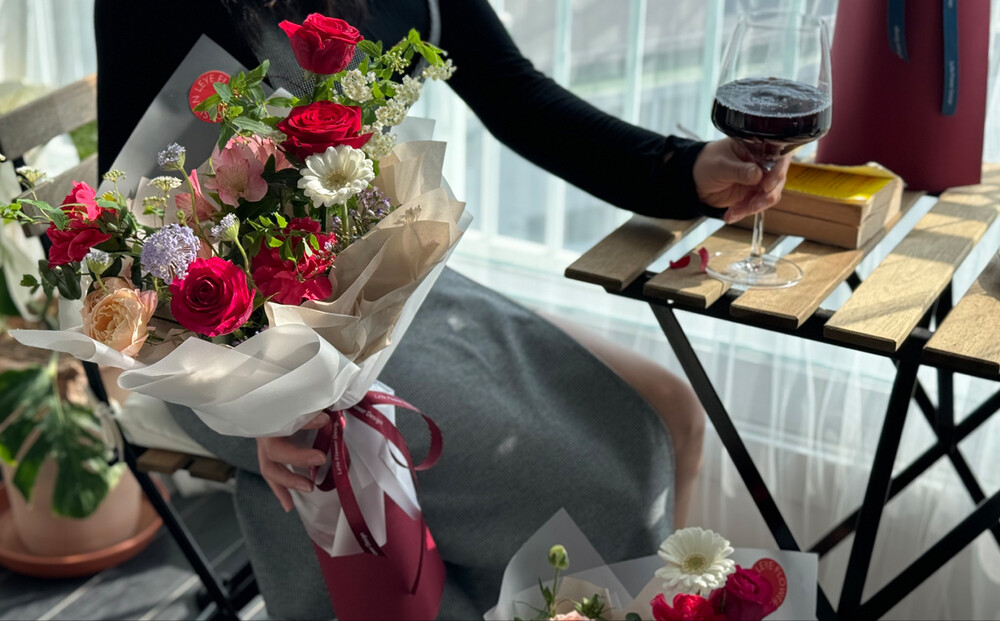 은은한 무드에 분위기를 더해줄 레드 꽃다발이에요