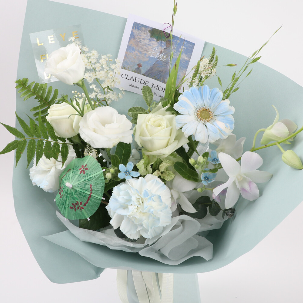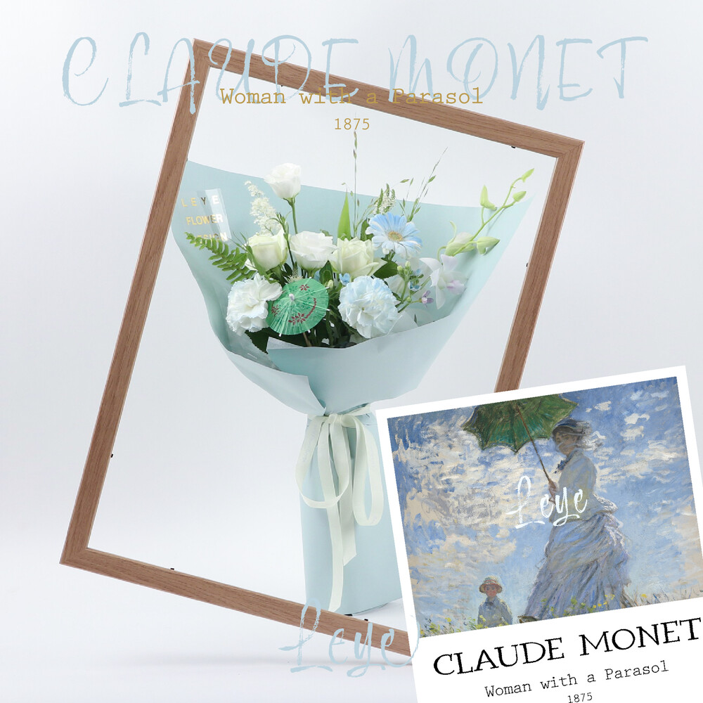 부드러운 하늘과 싱그러운 들판, 여인이 든 파라솔까지 꽃다발로 표현해보았어요
