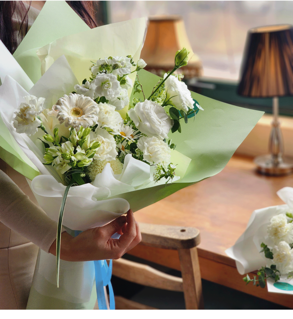 화이트그린 꽃다발을 추천드려요-