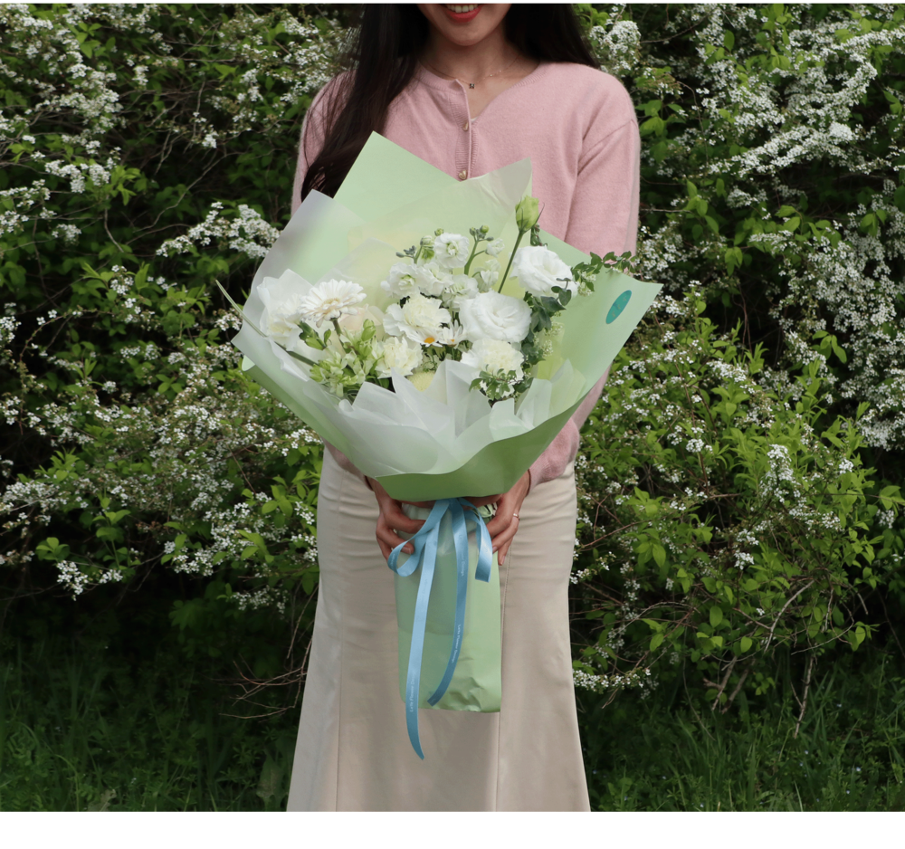 화이트그린 꽃다발 L