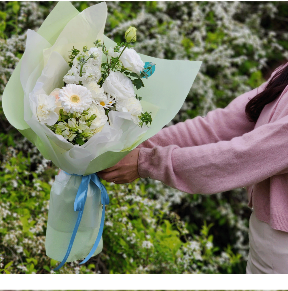 화이트&그린 꽃다발 L