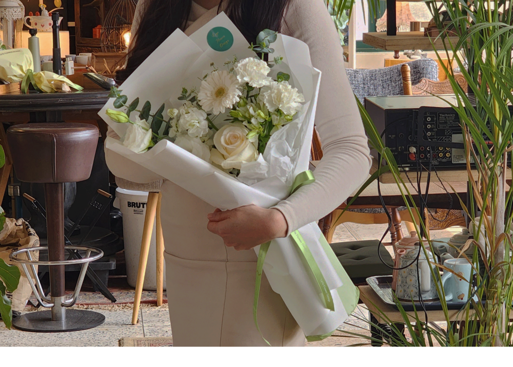 🤍 당일 예약시 매장에 있는 예쁜 꽃들로 제작해 드려요