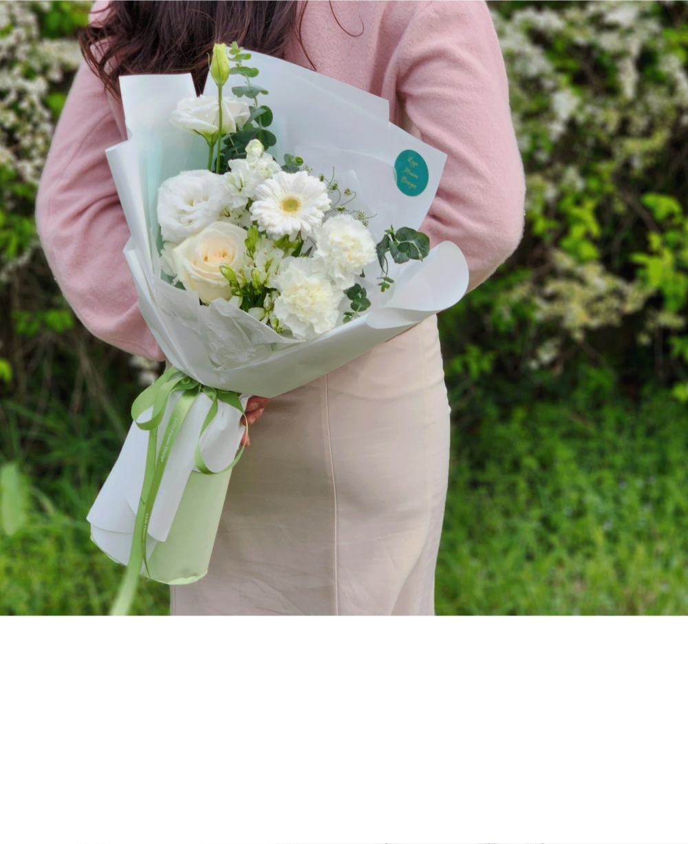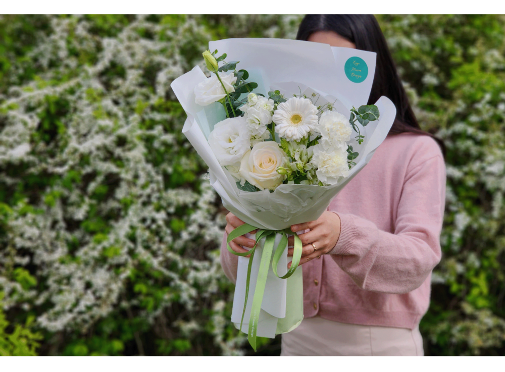 컬러감 있는 꽃도 예쁘지만 결혼 부케 느낌의 순수한 색감을 원하신다면