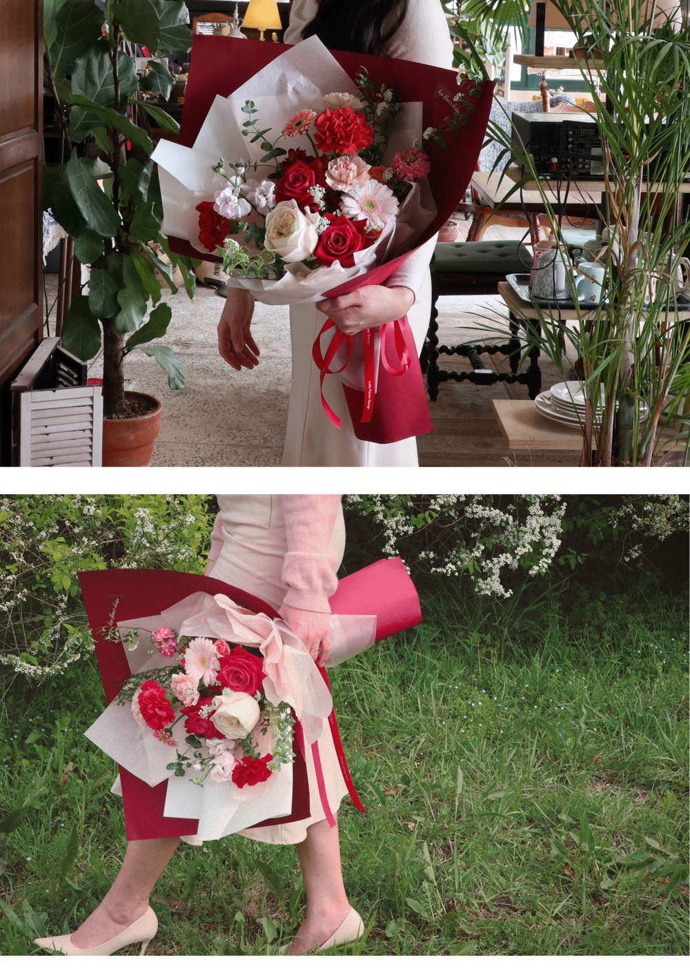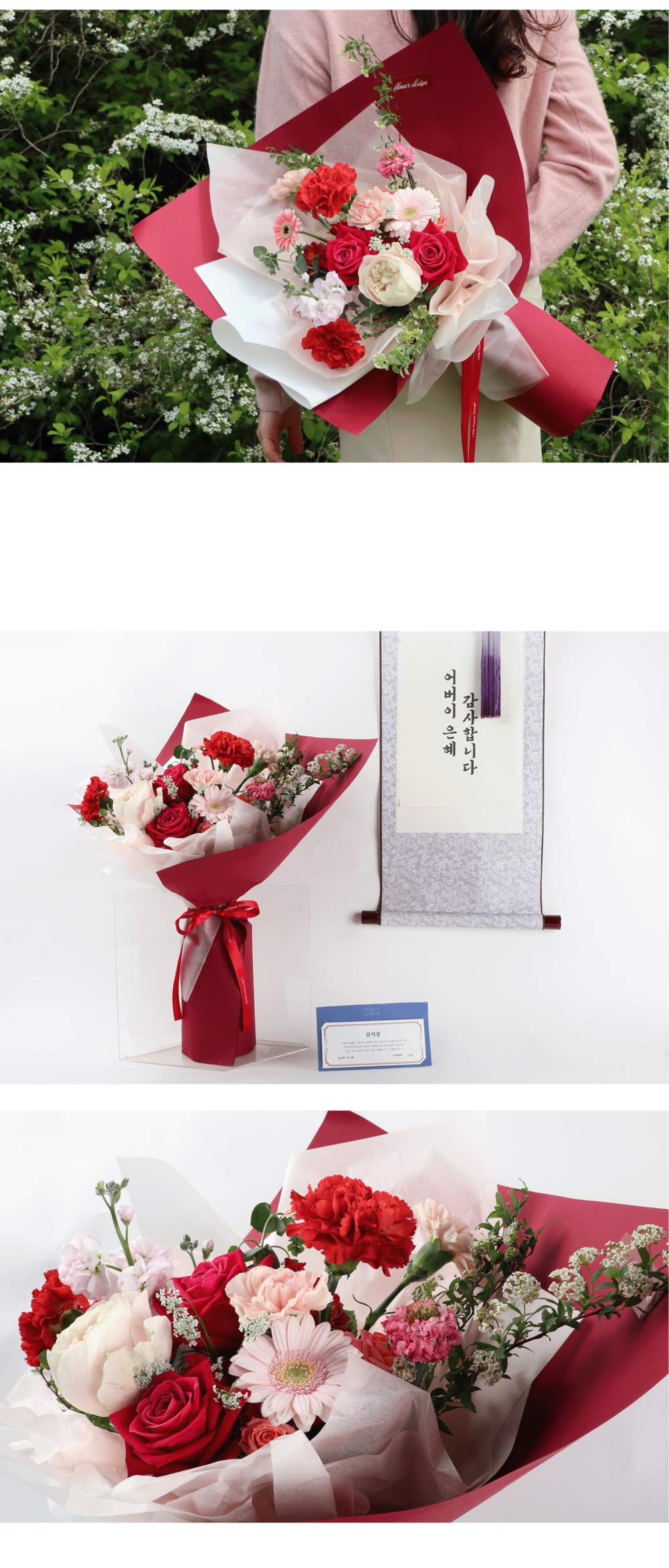 사랑과 감사의 마음을 담은 레드핑크 꽃다발입니다.