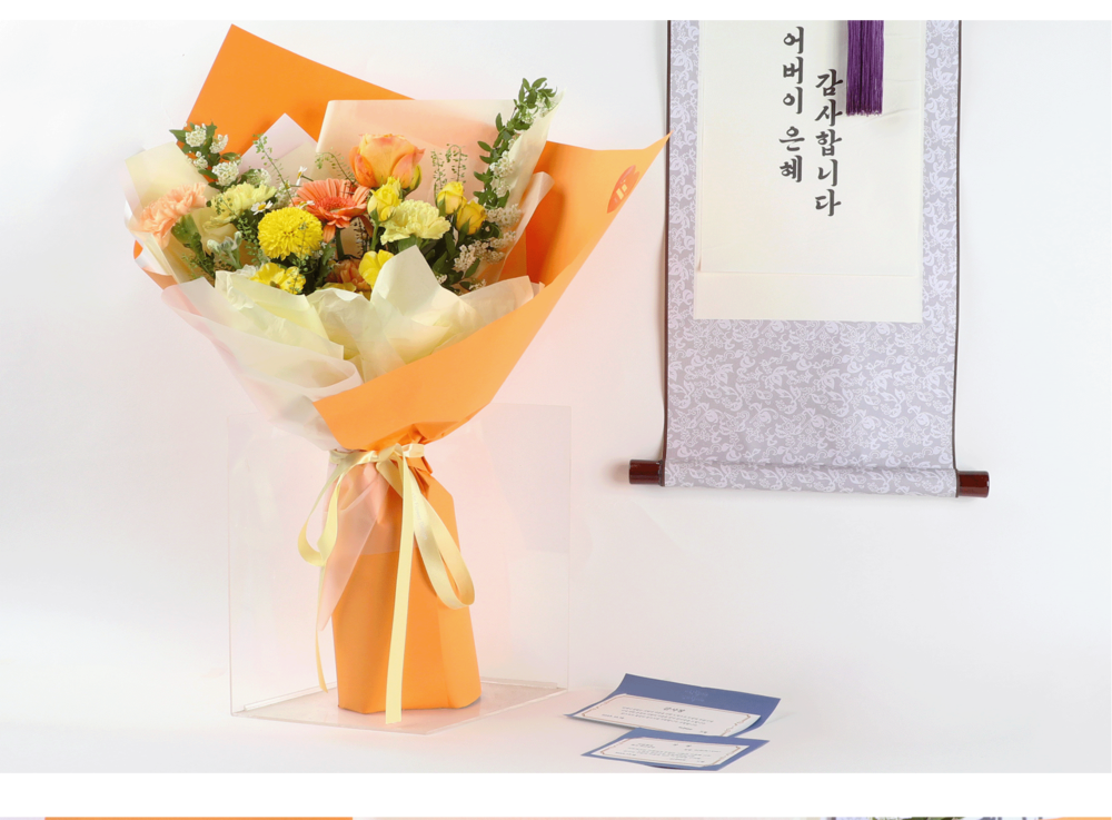 옐로,오렌지 카네이션과 연한 오렌지 포장으로