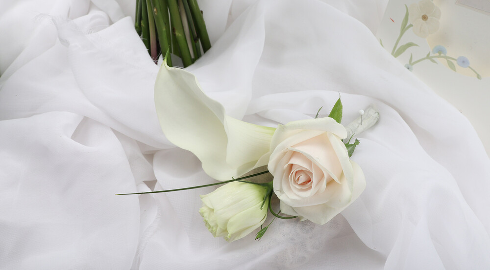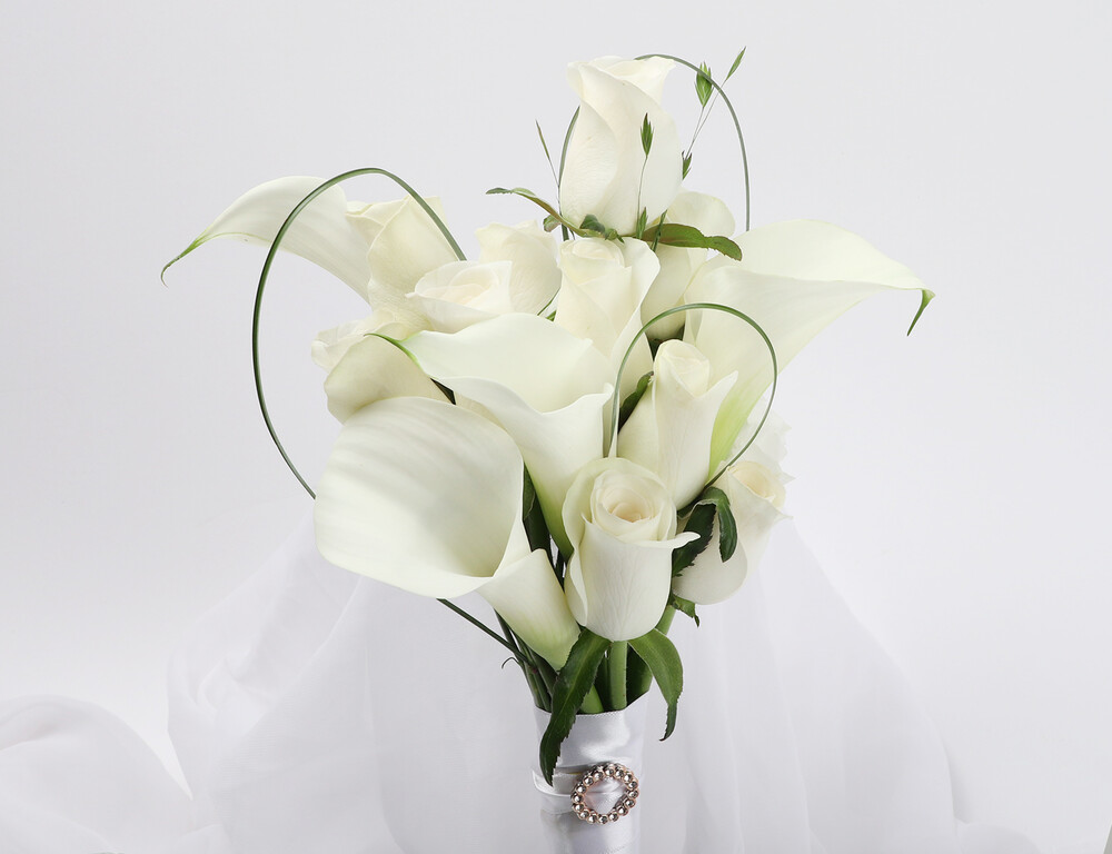 화이트카라그레이스캘리장미 웨딩부케