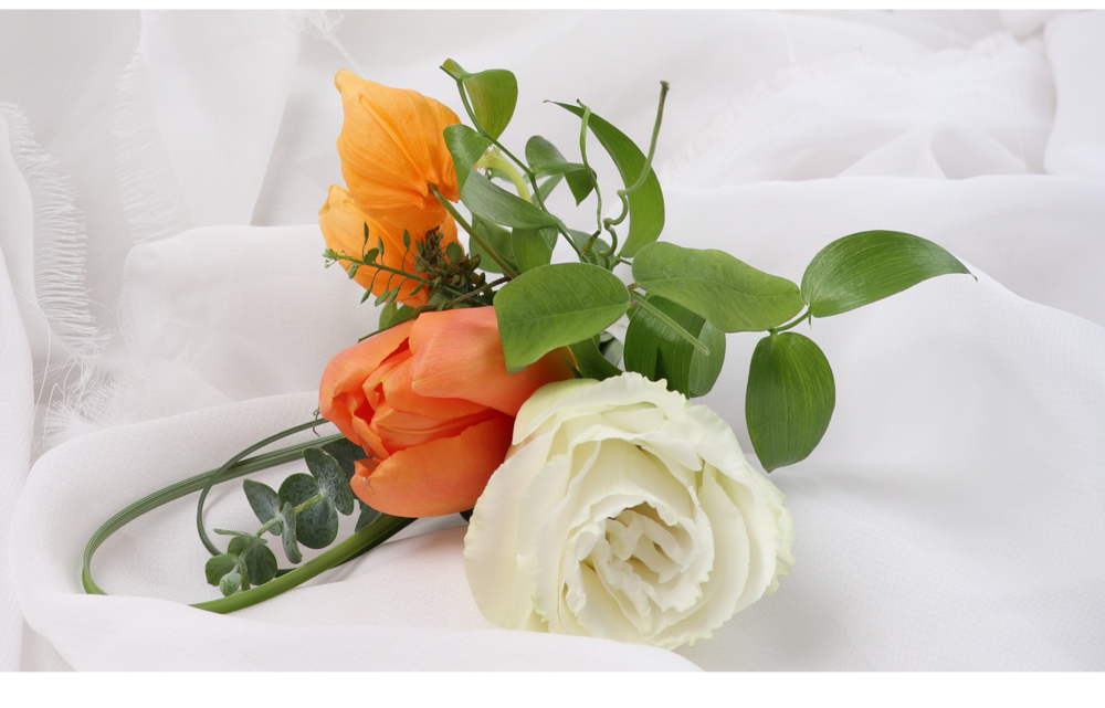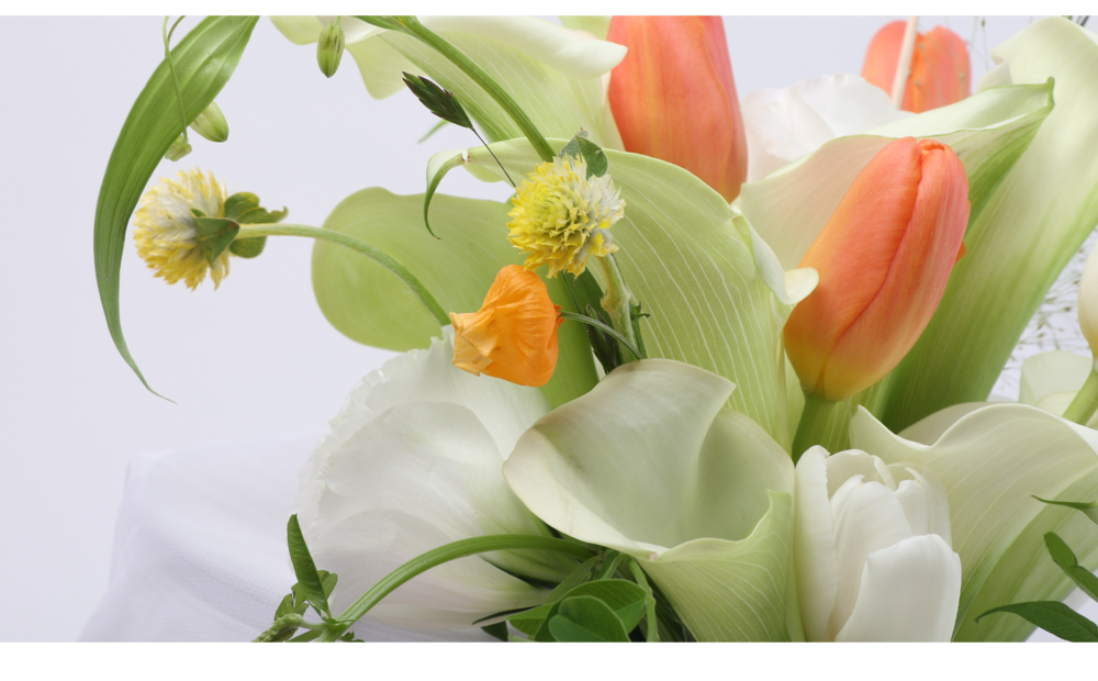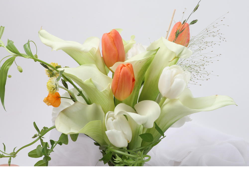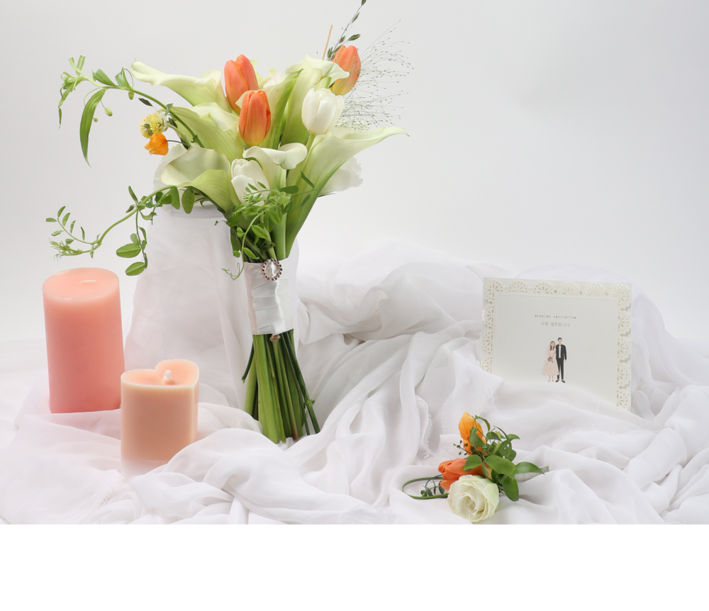 오렌지화이트튤립카라 웨딩부케