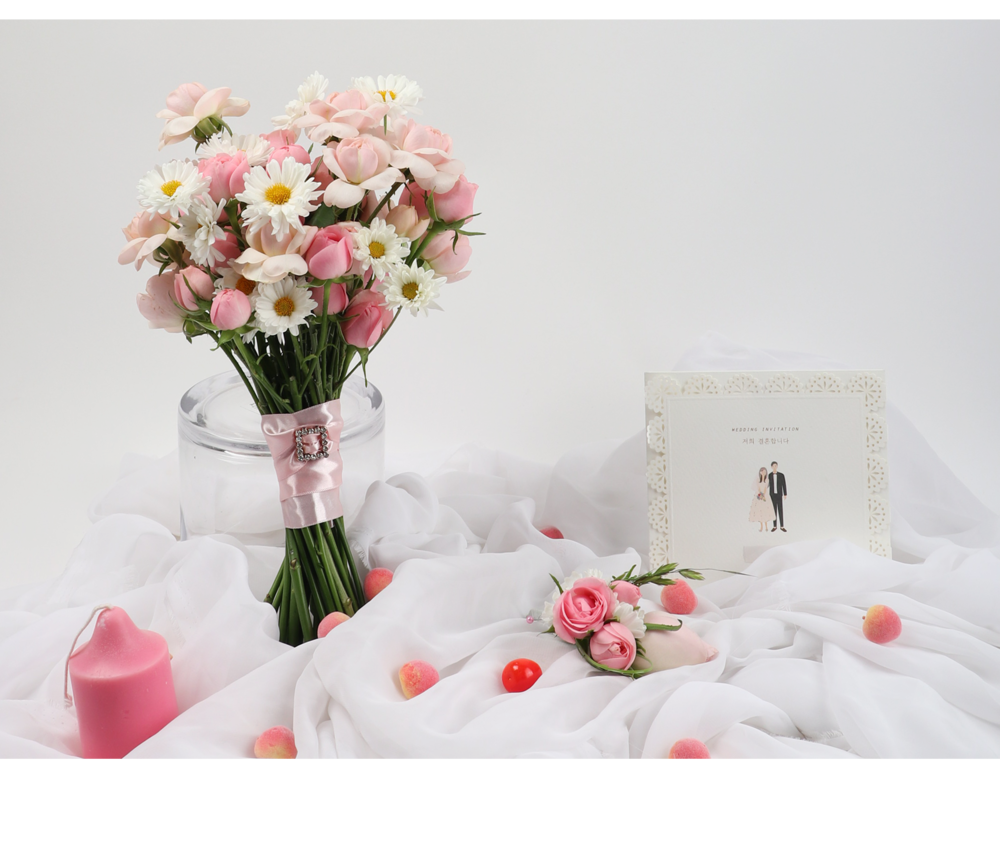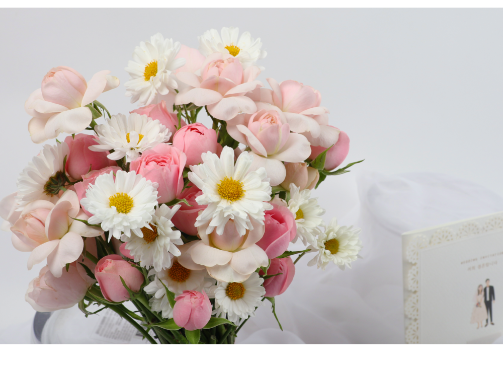 장미인터레이자나계란소국 웨딩부케