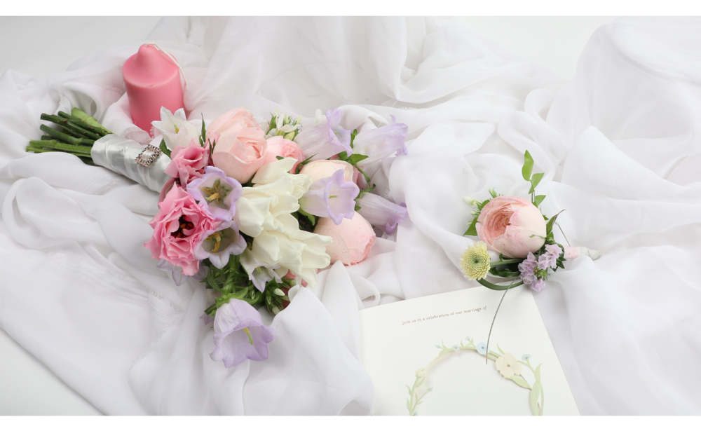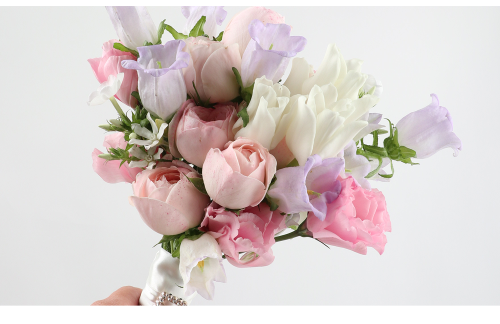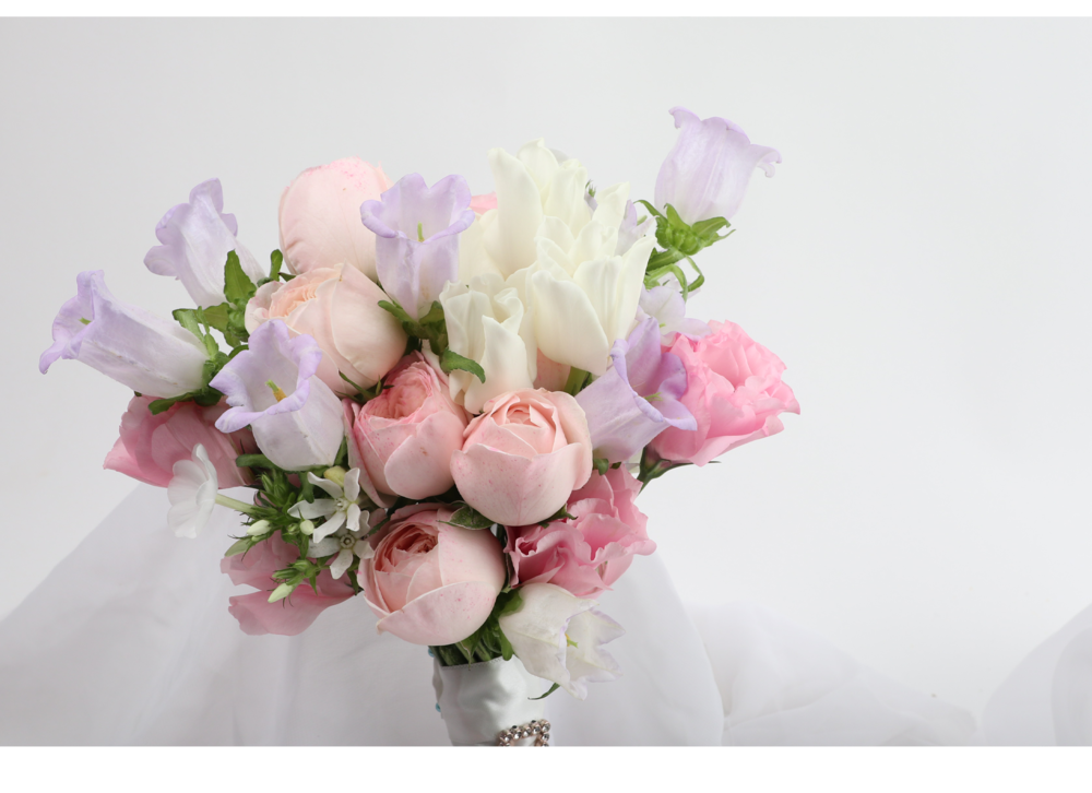 연보라캄파눌라핑크장미리시안 웨딩부케