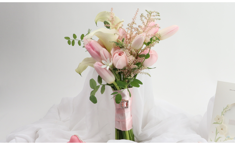 연핑크튤립카라 웨딩부케