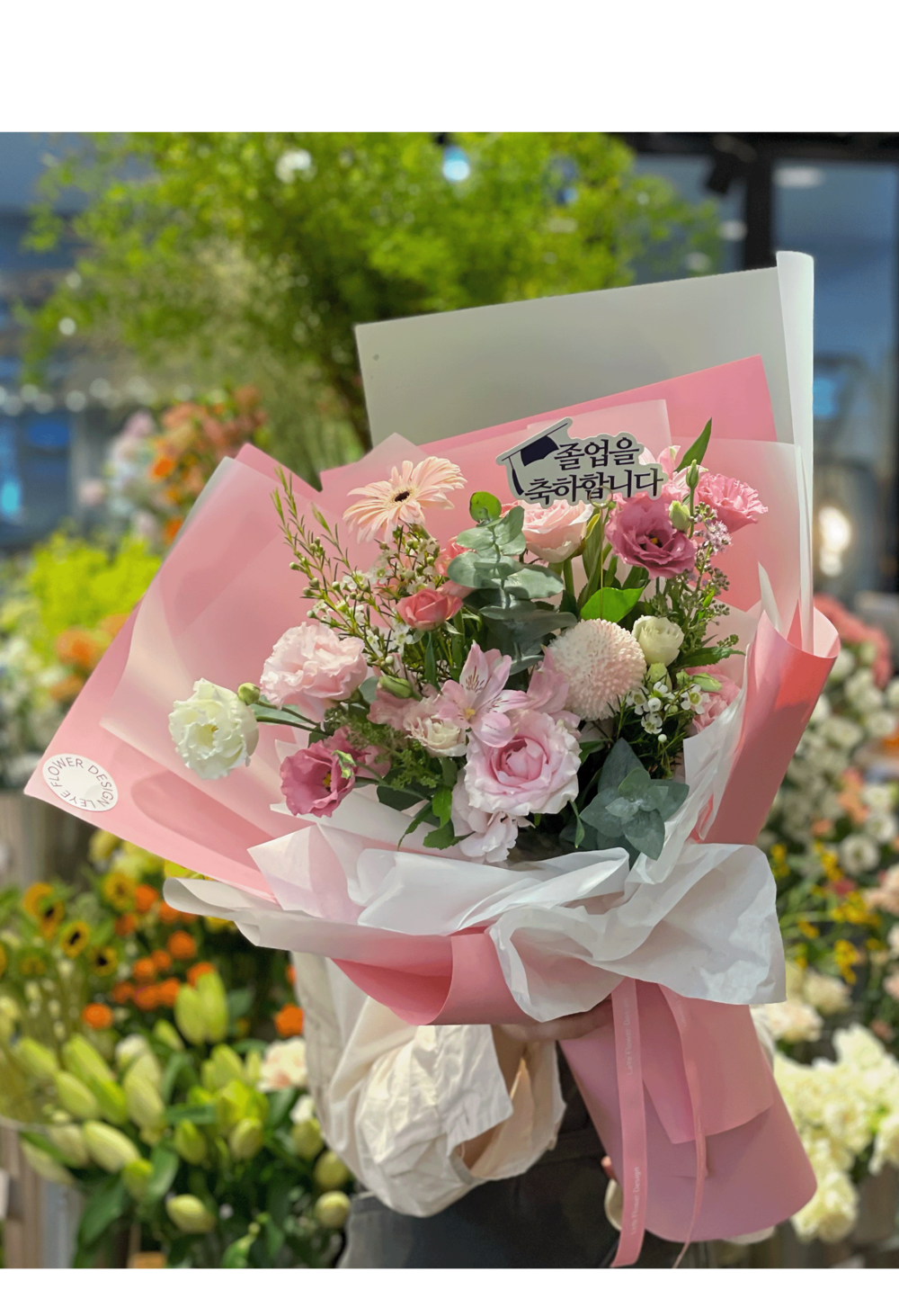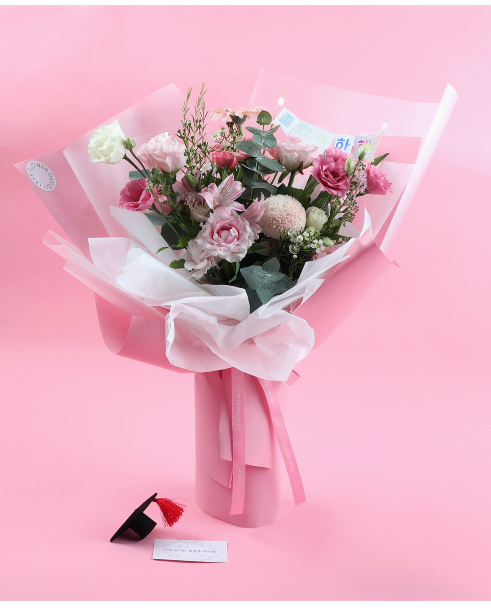 여름에 졸업하는 당신을 위한 핑크 꽃다발입니다.