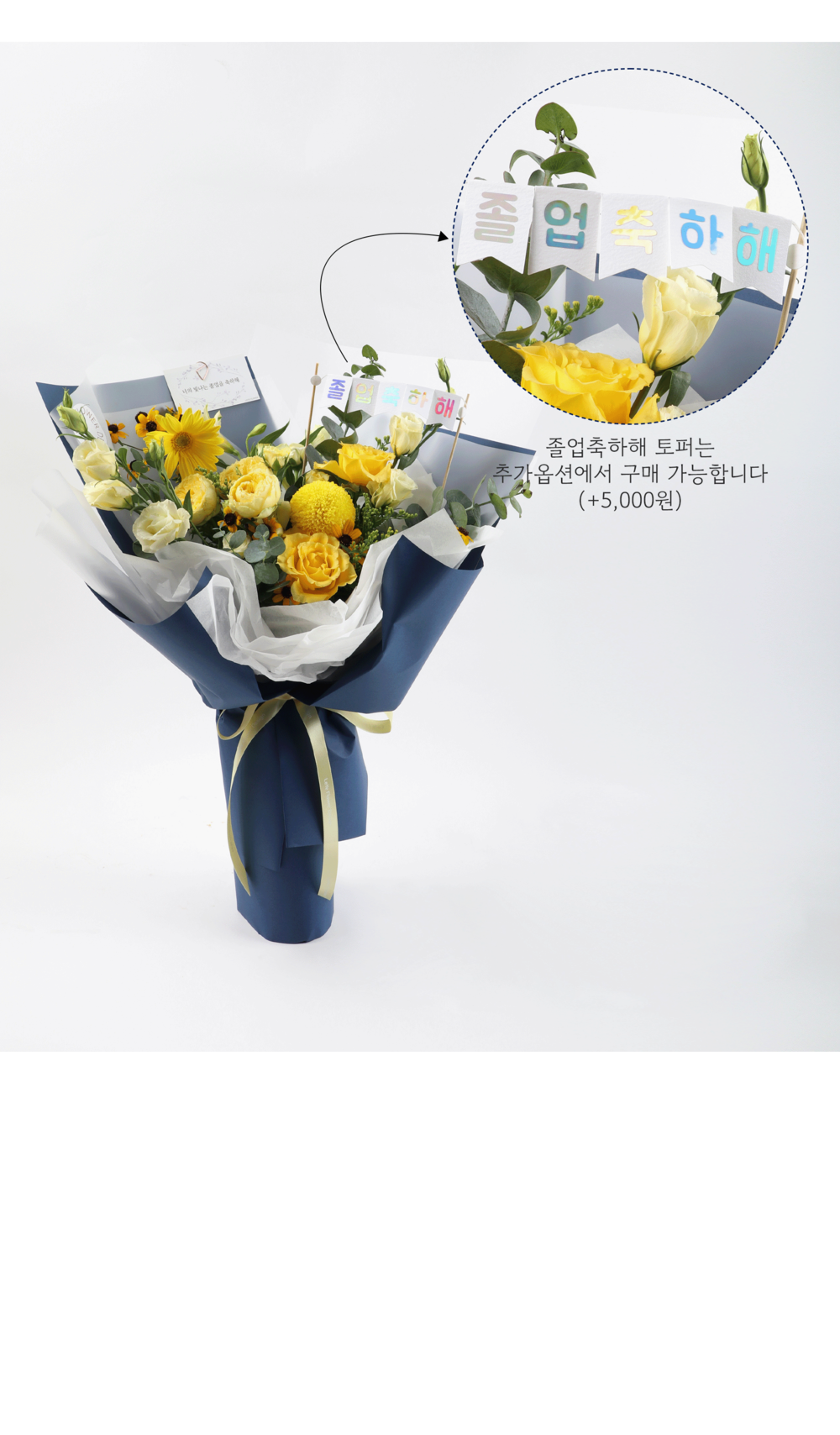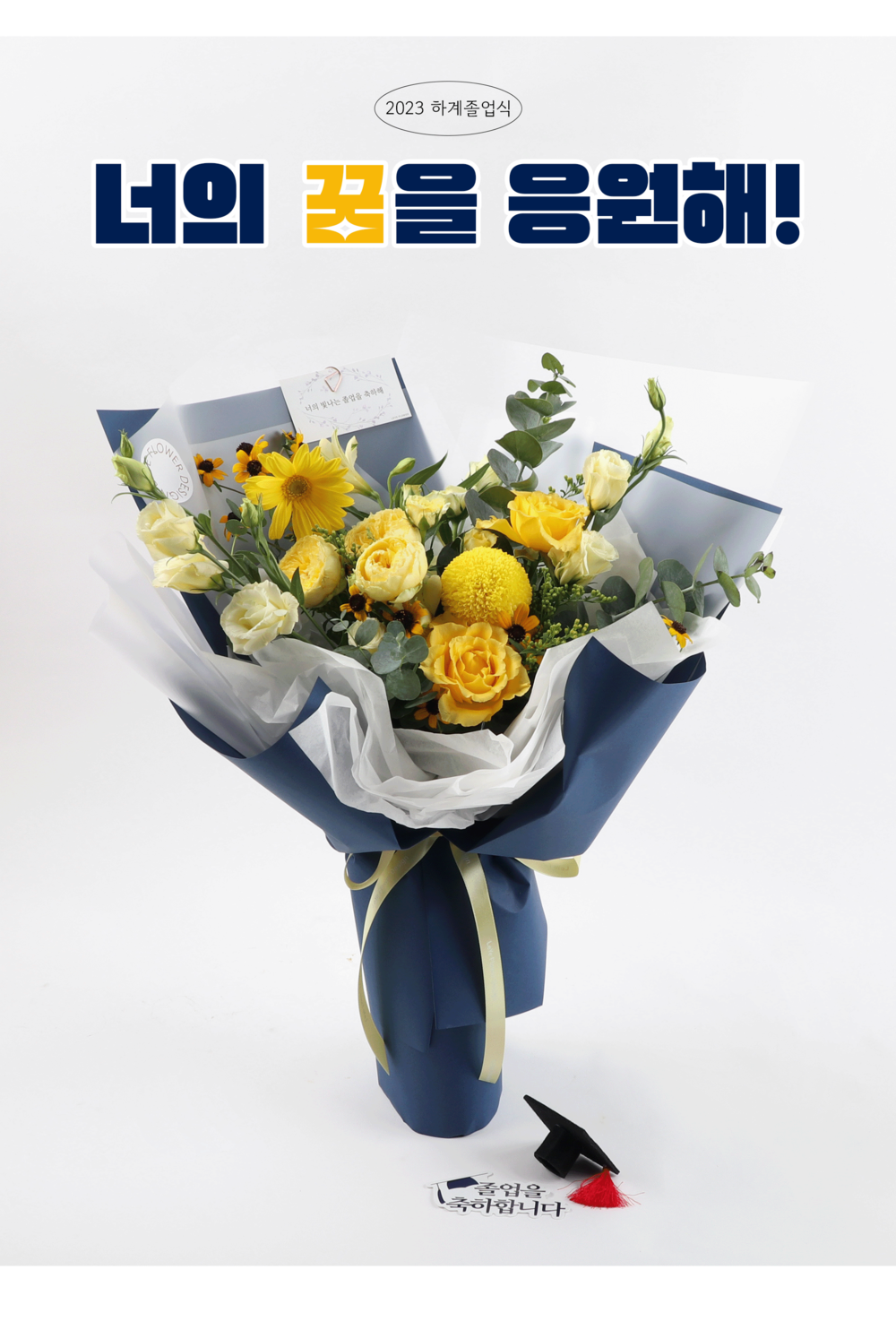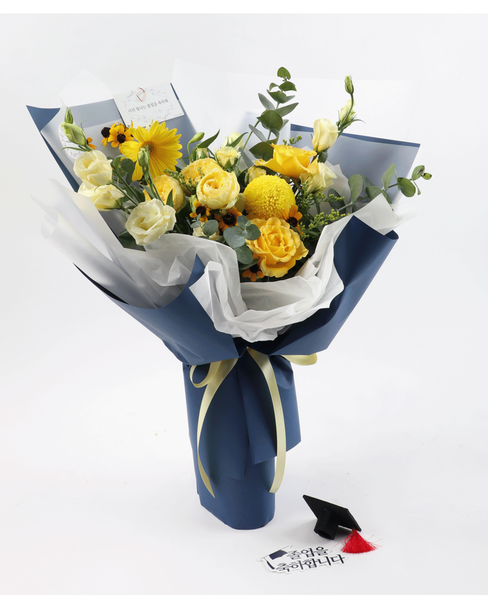 여름에 졸업하는 당신을 위한 화사한 옐로우 꽃다발입니다.