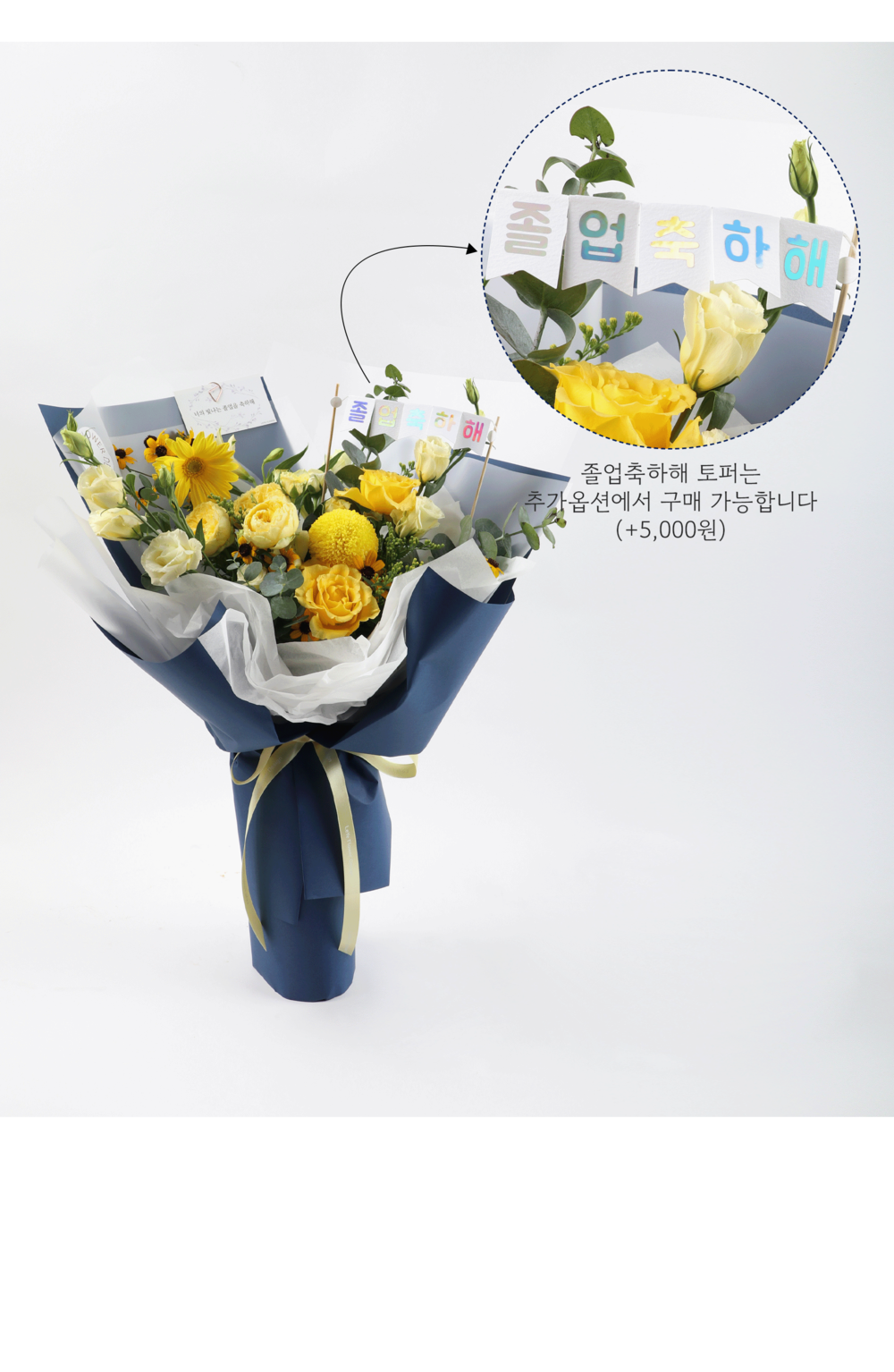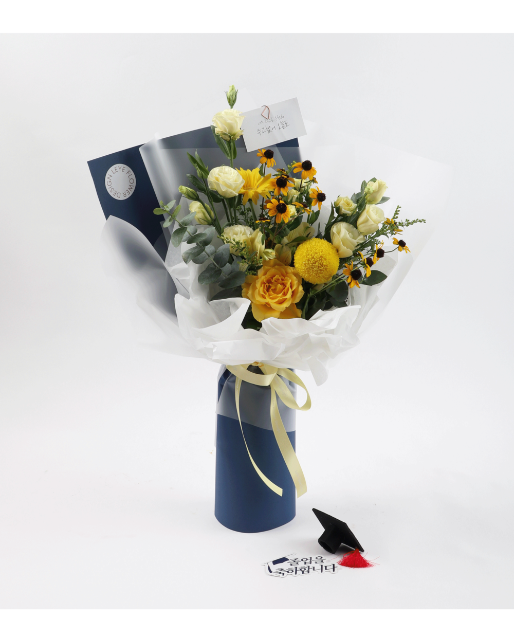 여름에 졸업하는 당신을 위한 화사한 옐로우 꽃다발입니다.