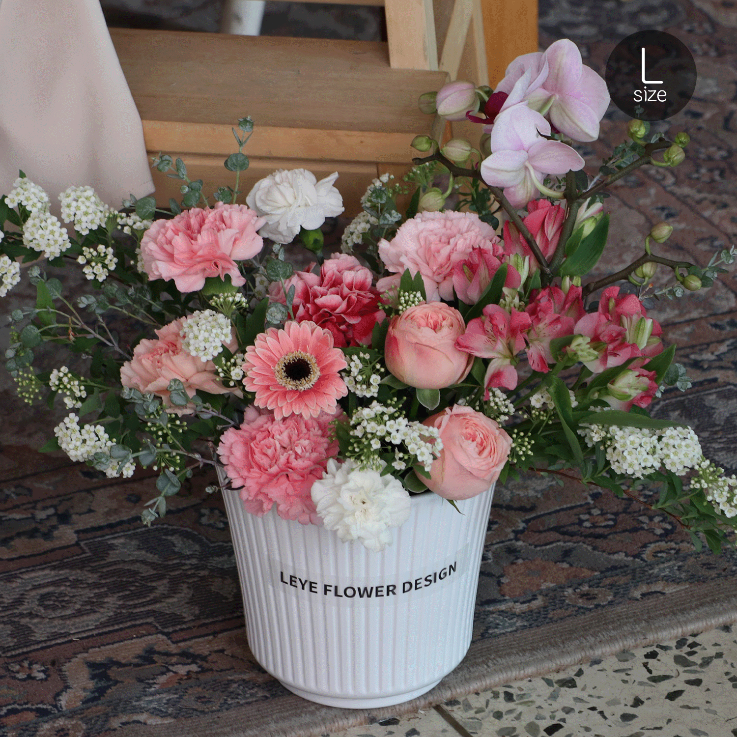 호접란이 포함되어 있어 더욱 의미있고 고급스러운 꽃베이스입니다.