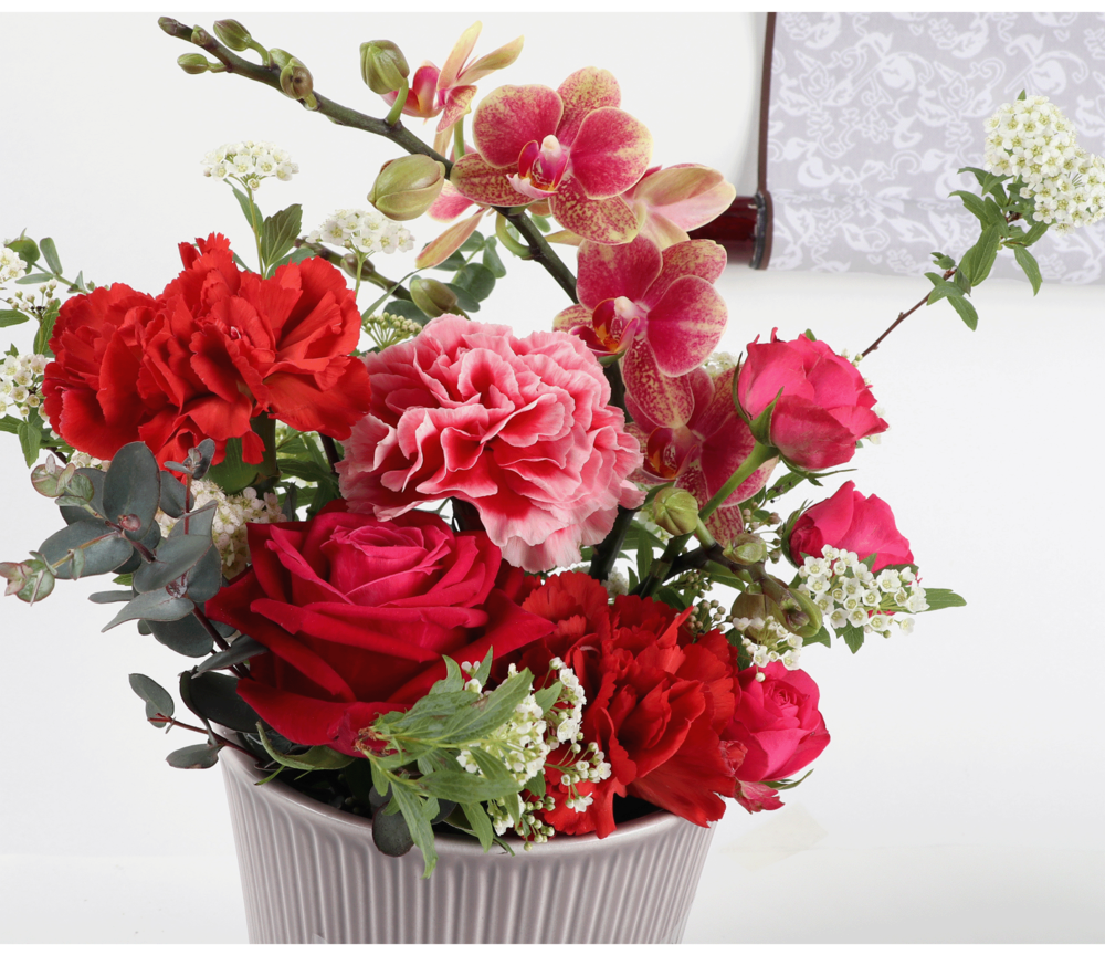 강렬한 레드톤의 카네이션과 '행복이 날아든다' 라는 꽃말을 가지고 있는
